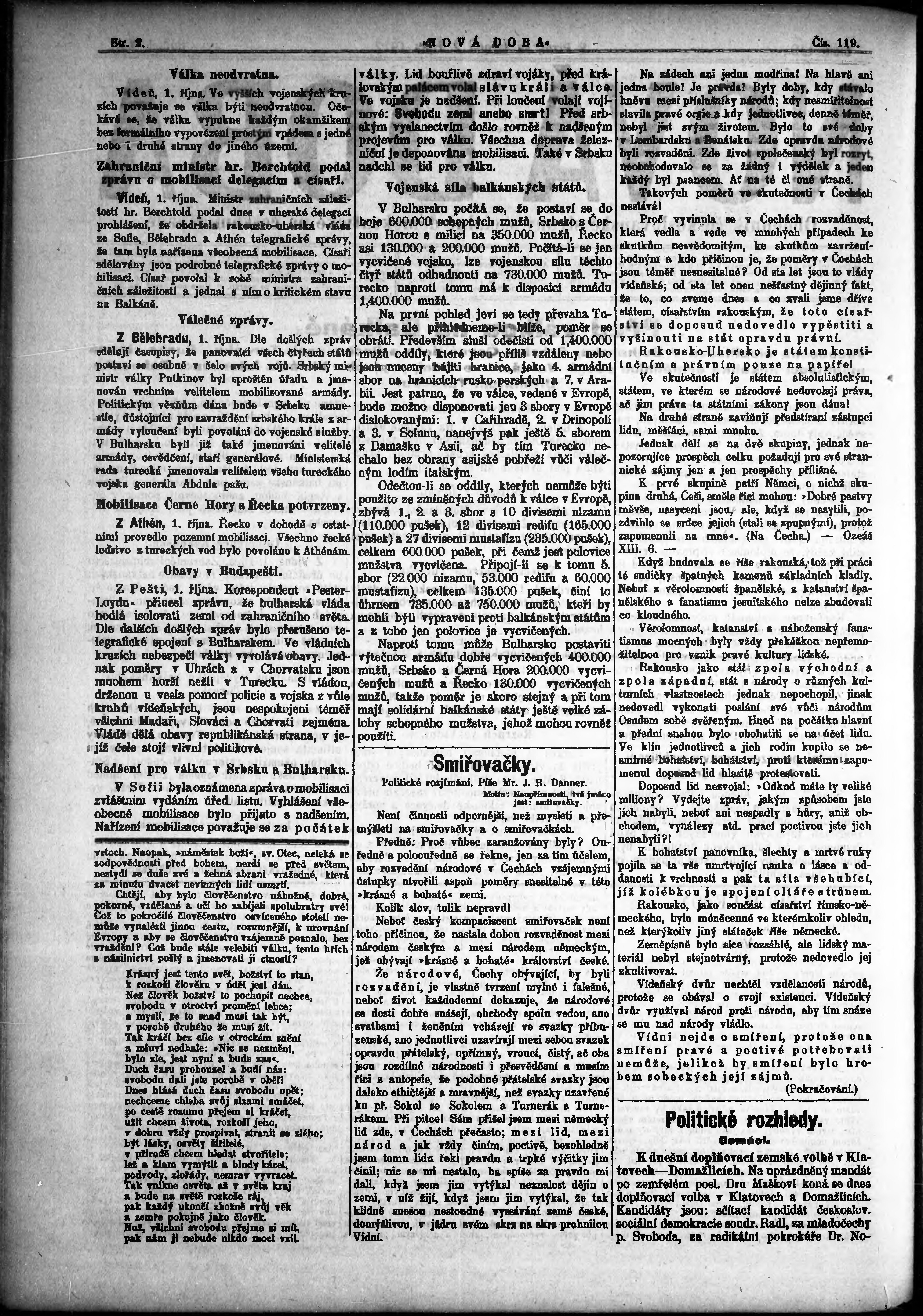* Datum vydání výtisku: 2.10.1912 Číslo výtisku: 119