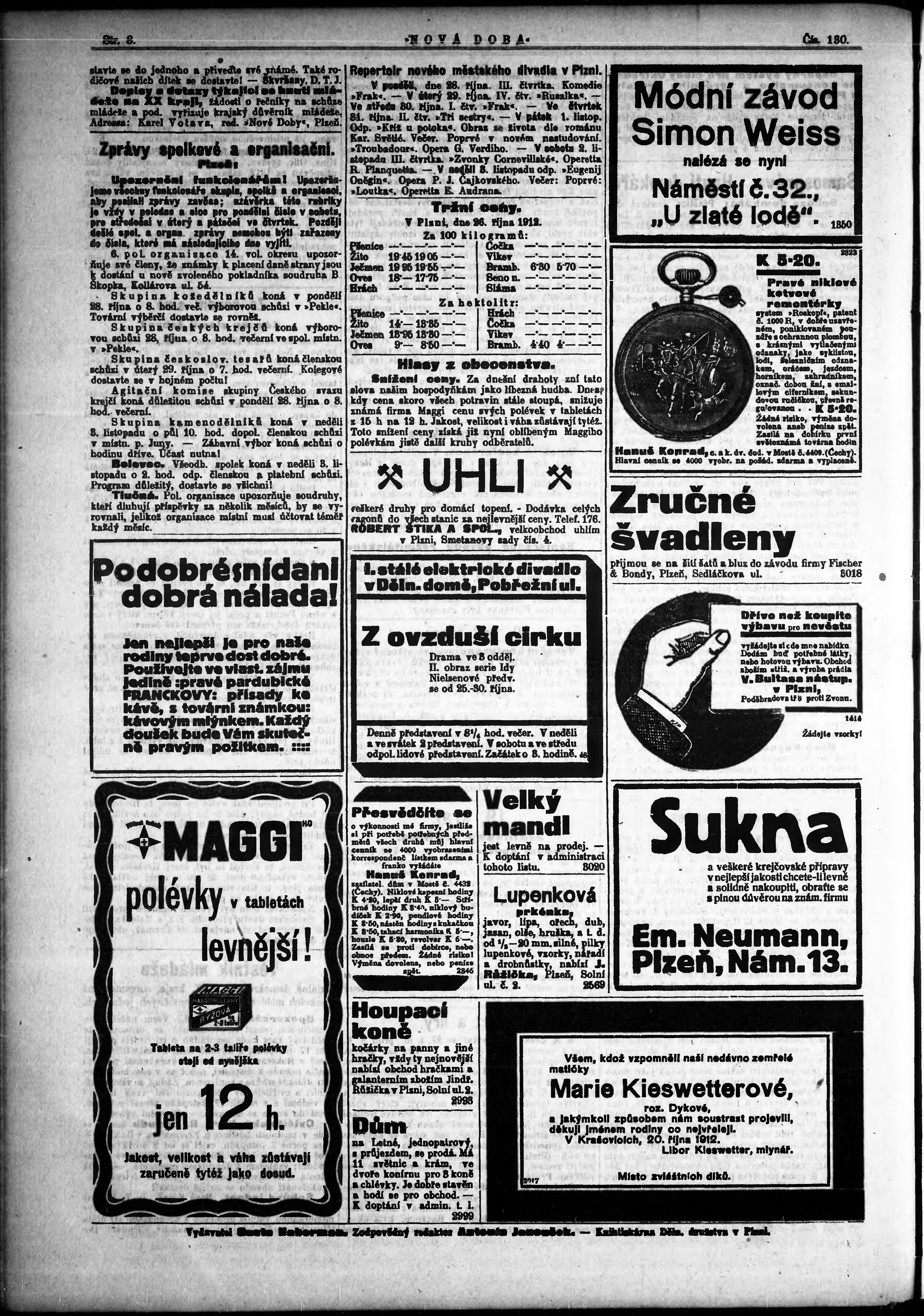* Datum vydání výtisku: 28.10.1912 Číslo výtisku: 130