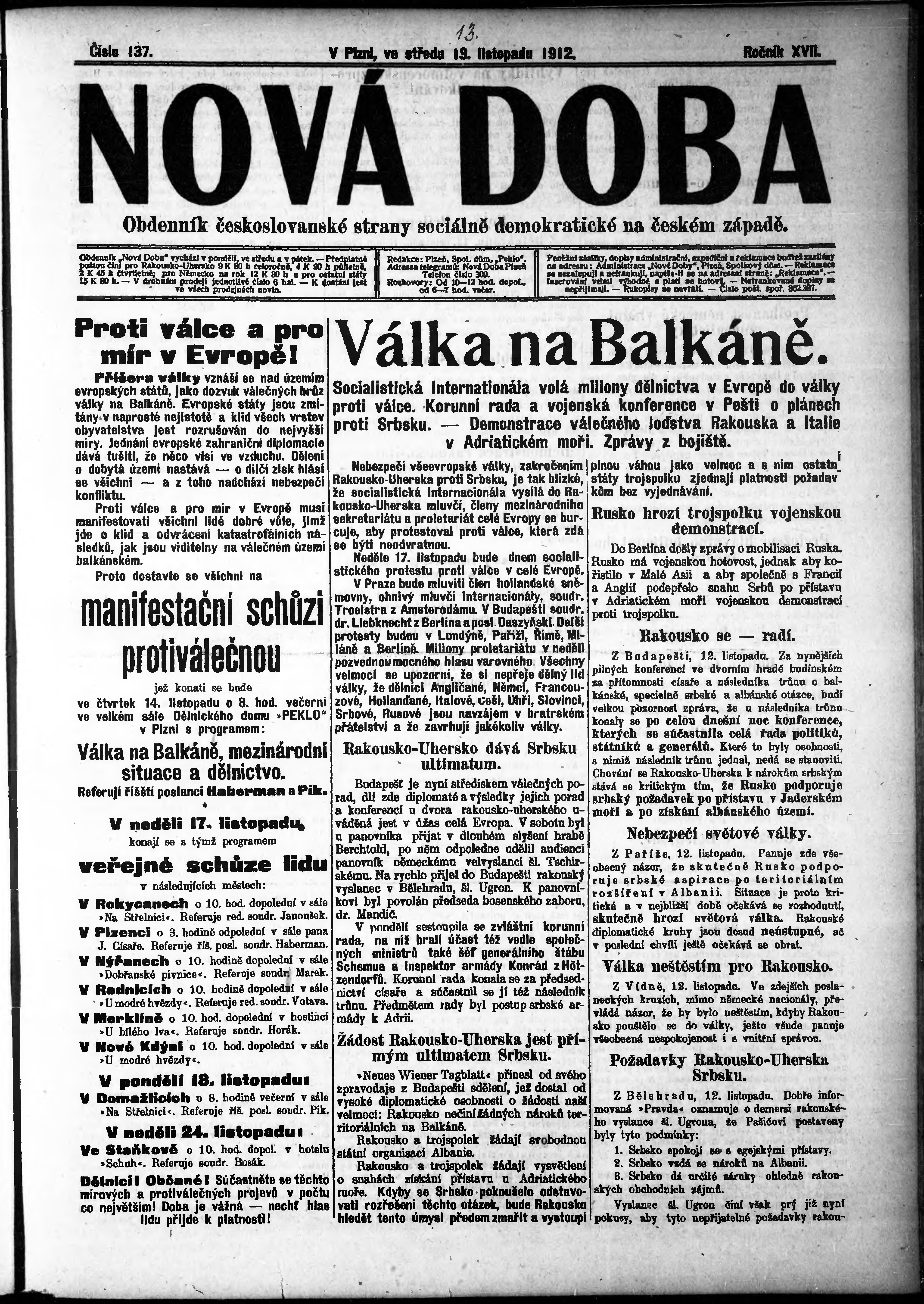 * Datum vydání výtisku: 13.11.1912 Číslo výtisku: 137