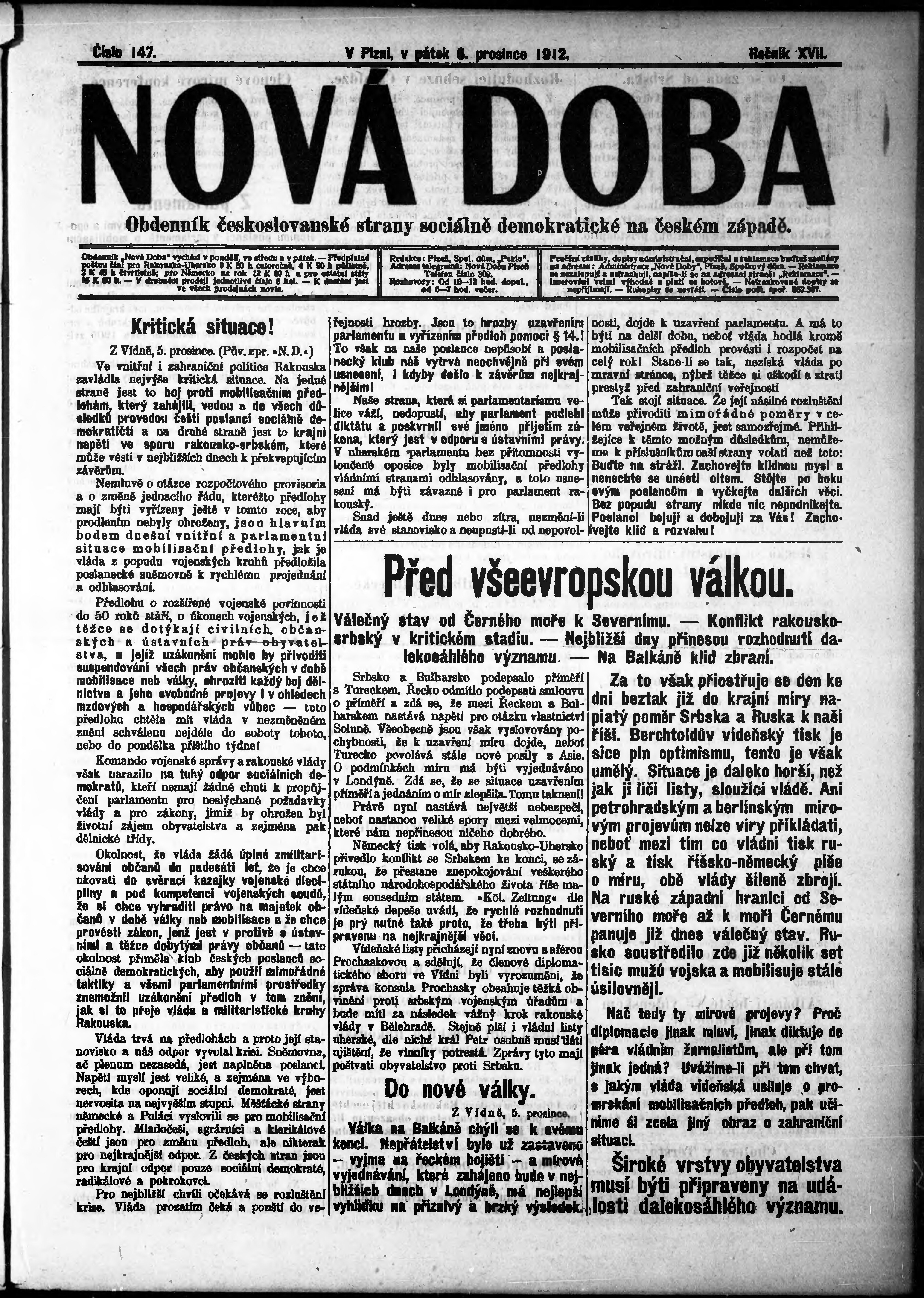 * Datum vydání výtisku: 6.12.1912 Číslo výtisku: 147