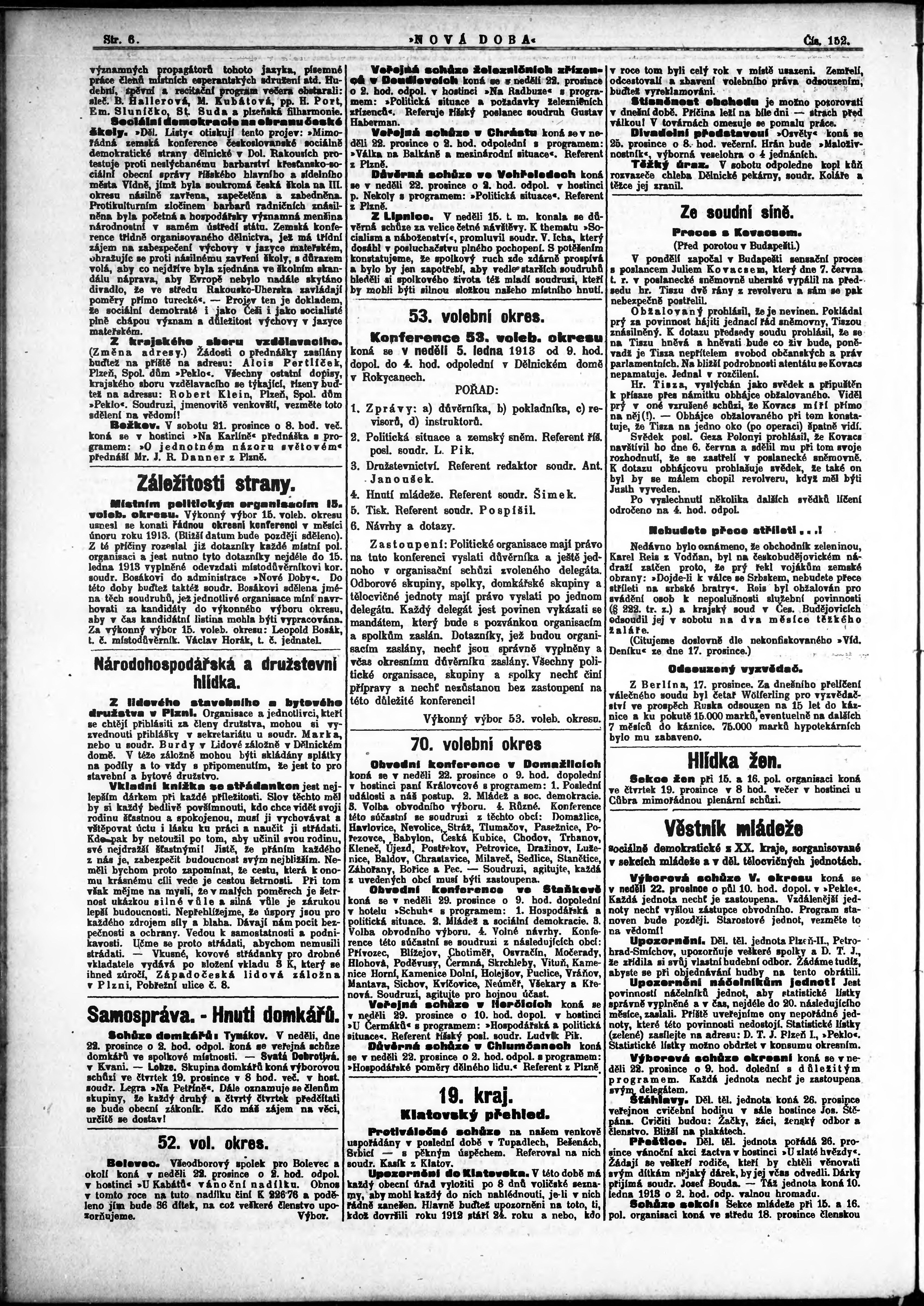 * Datum vydání výtisku: 18.12.1912 Číslo výtisku: 152