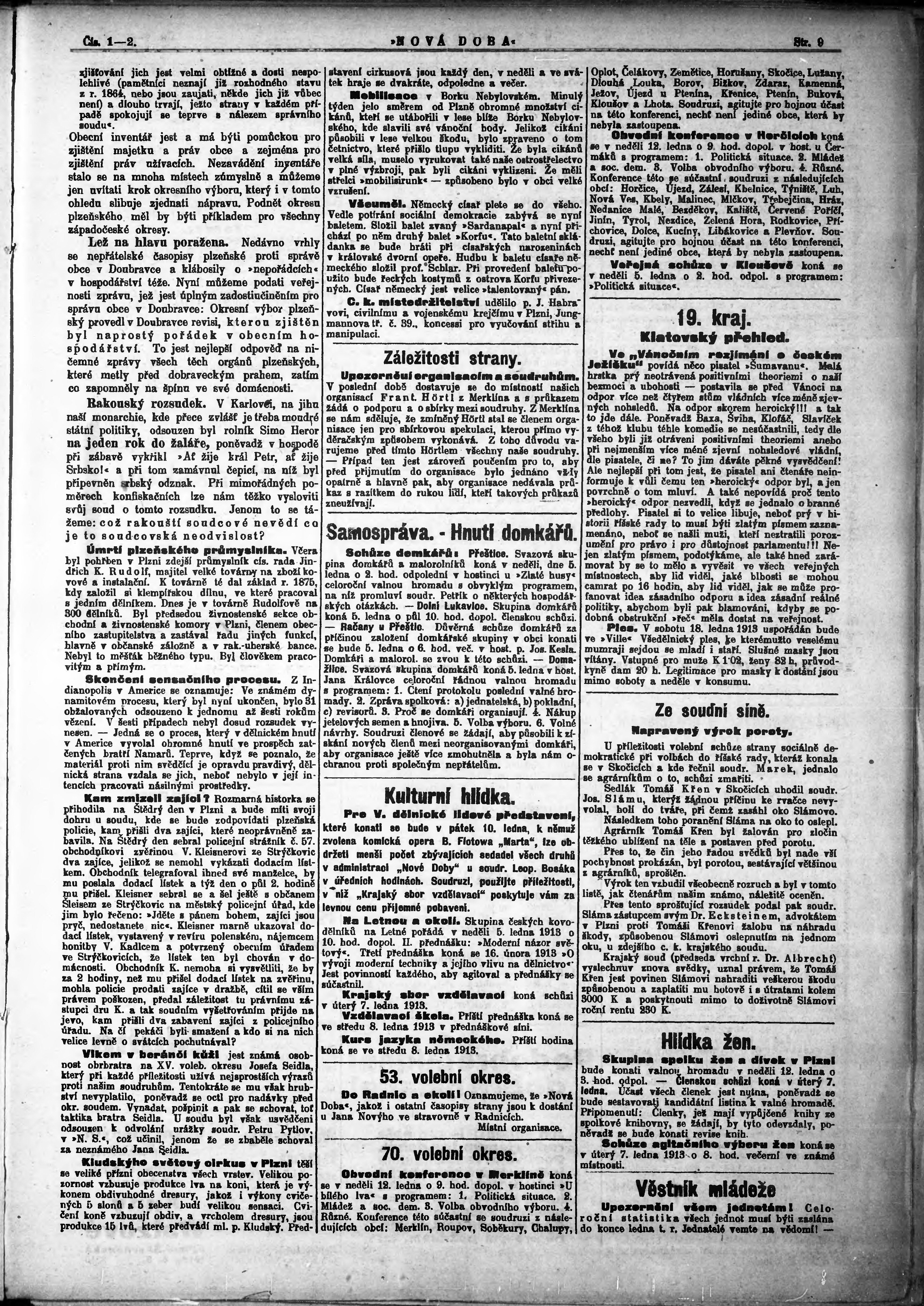 * Datum vydání výtisku: 3.1.1913 Číslo výtisku: 1 - 2