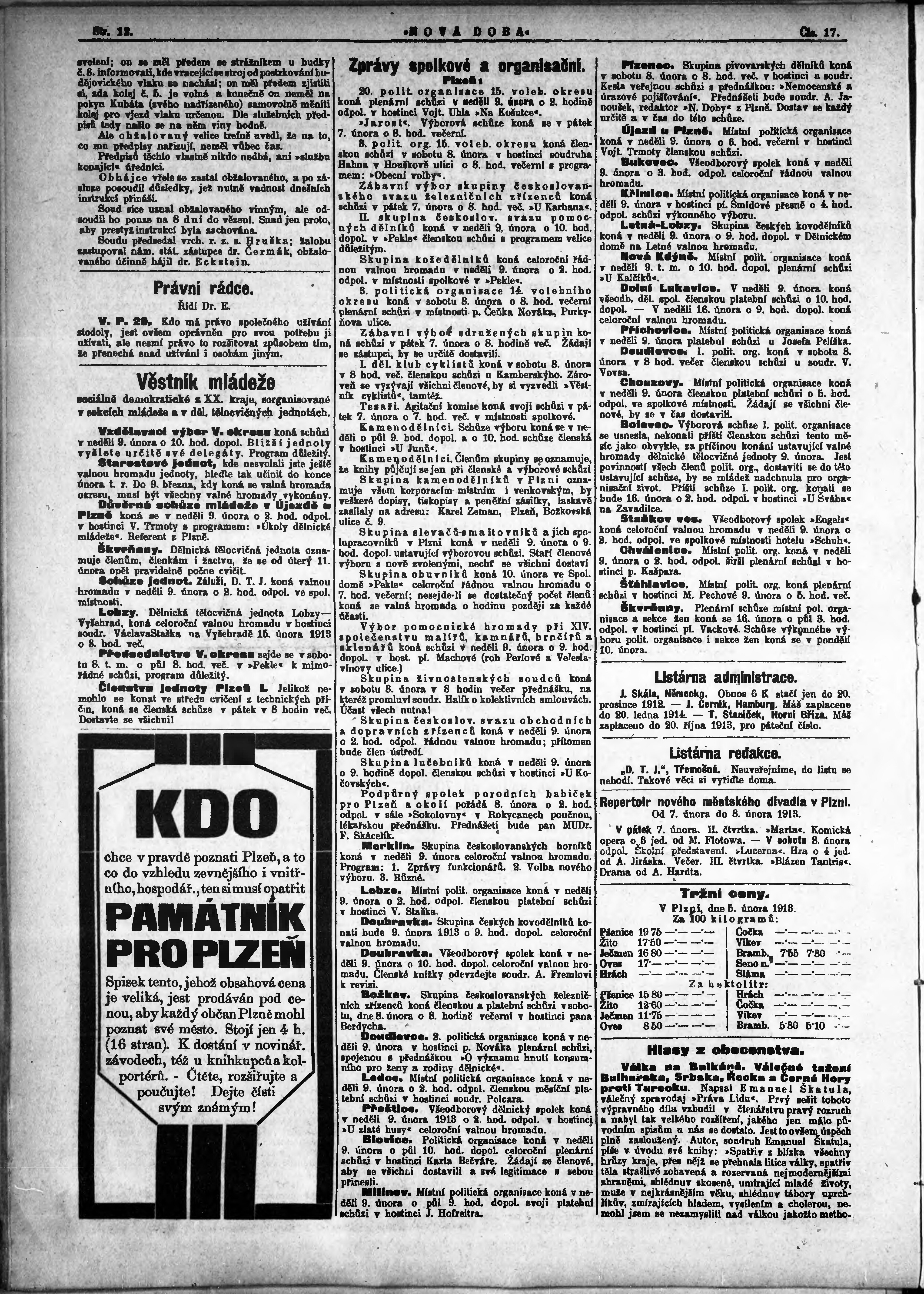 * Datum vydání výtisku: 7.2.1913 Číslo výtisku: 17