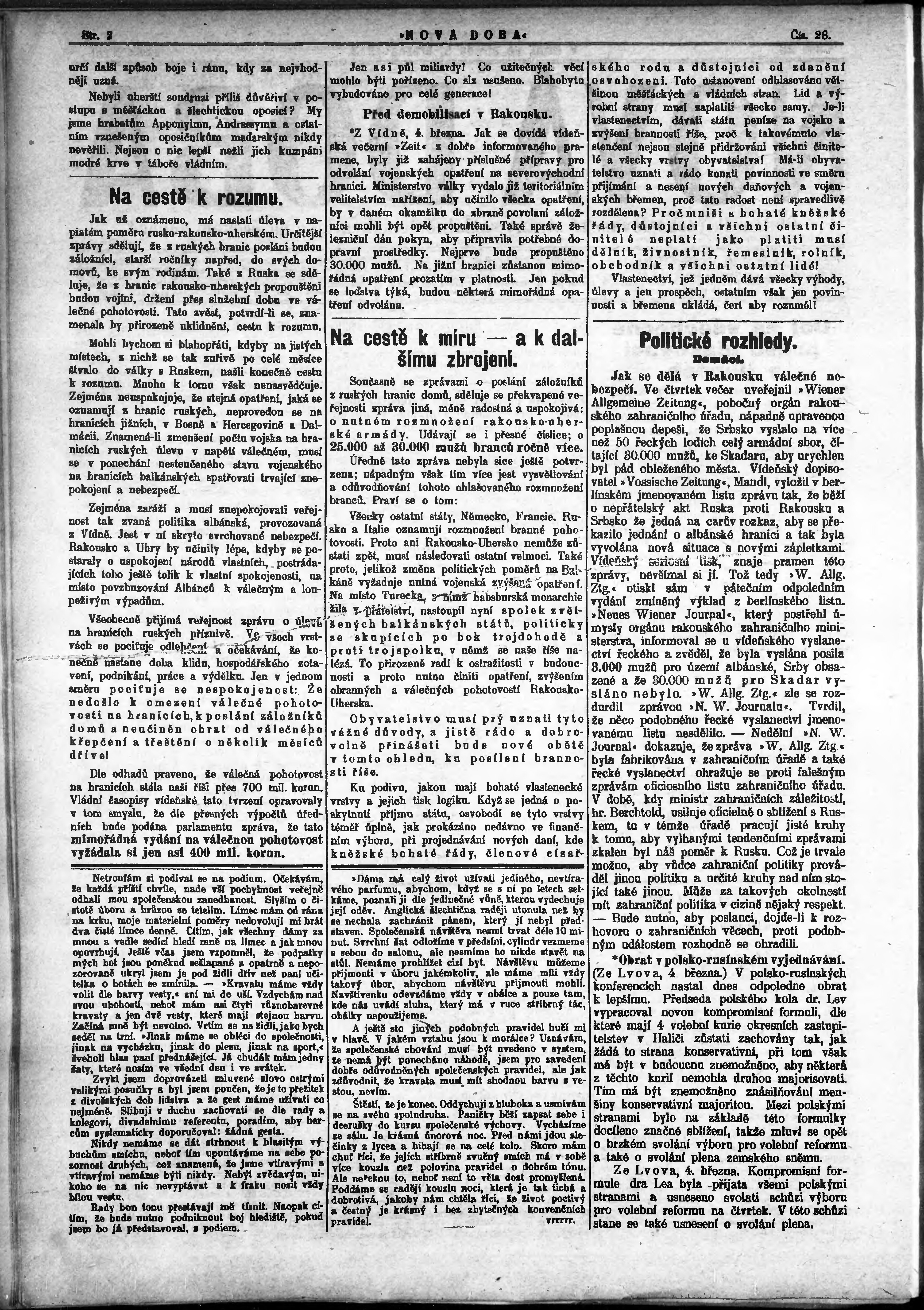 * Datum vydání výtisku: 5.3.1913 Číslo výtisku: 28
