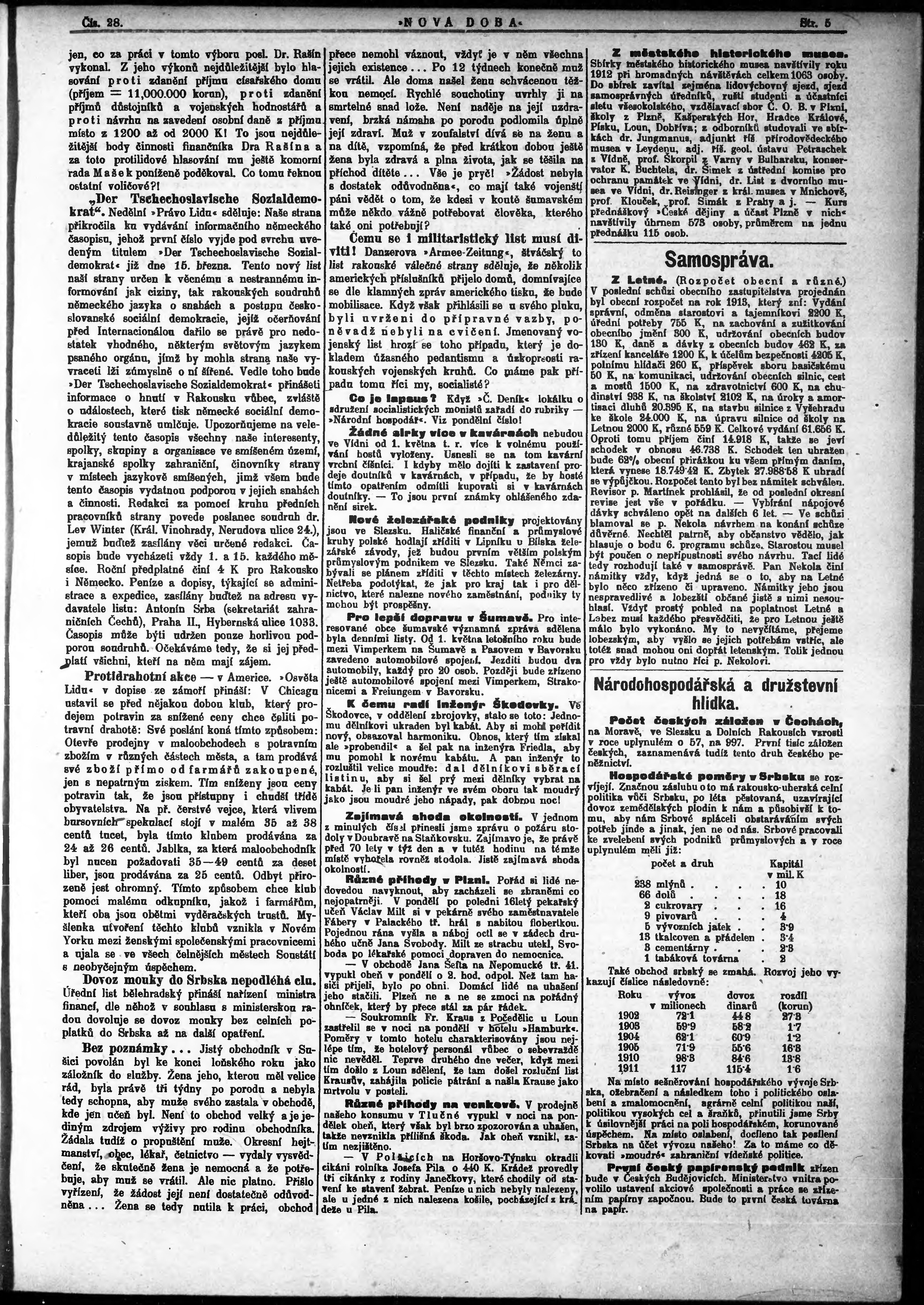 * Datum vydání výtisku: 5.3.1913 Číslo výtisku: 28