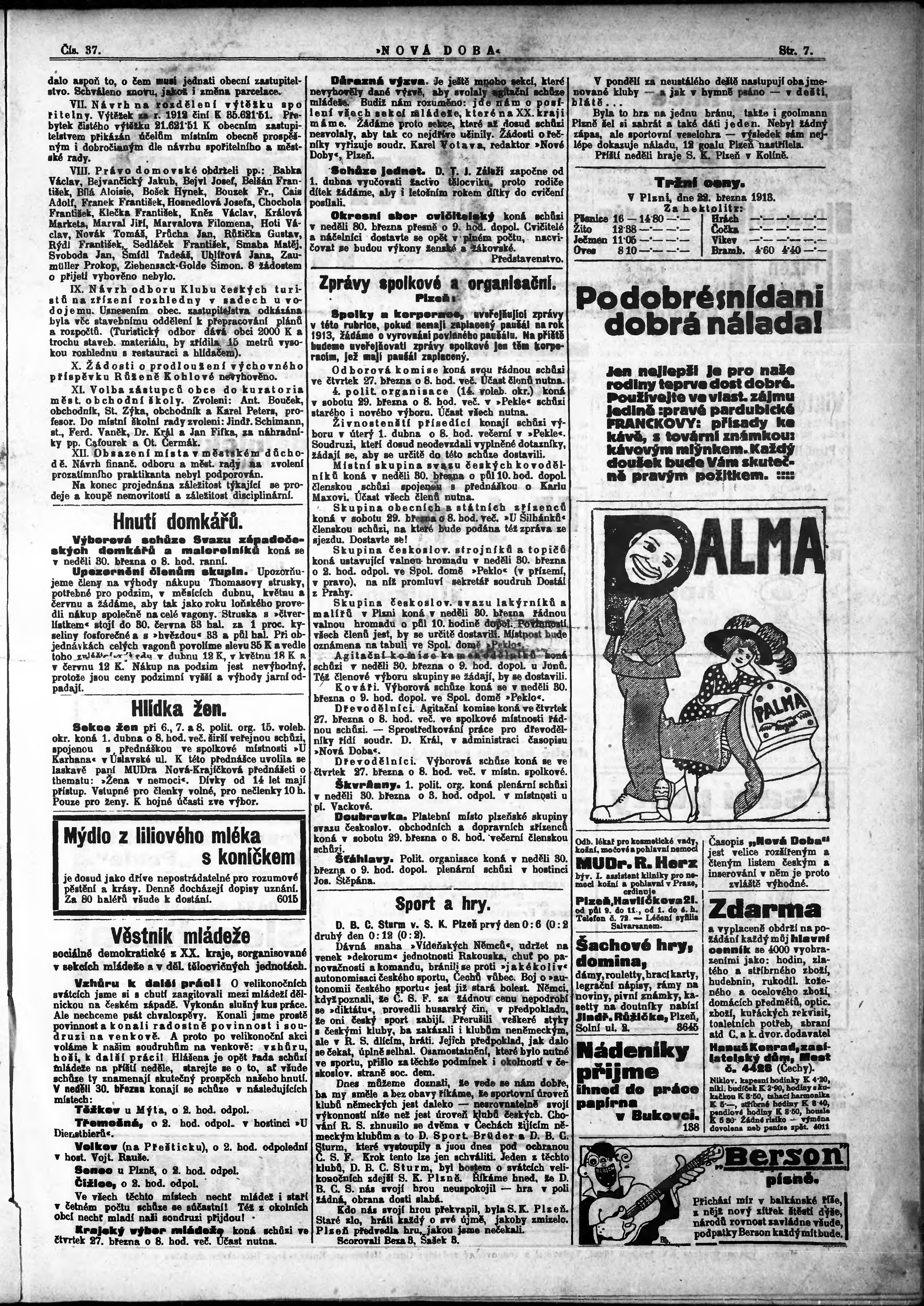 * Datum vydání výtisku: 26.3.1913 Číslo výtisku: 37