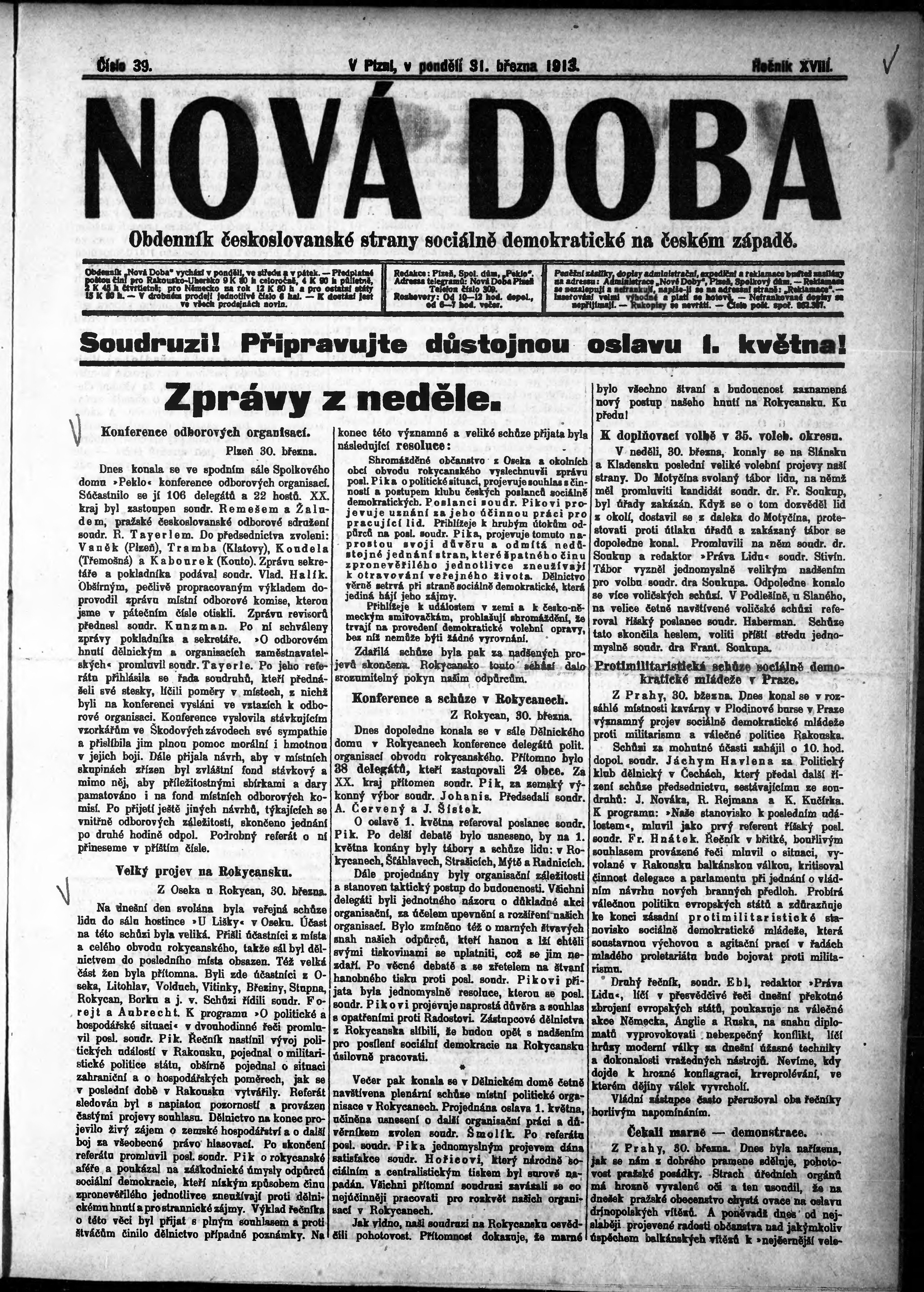 * Datum vydání výtisku: 31.3.1913 Číslo výtisku: 39