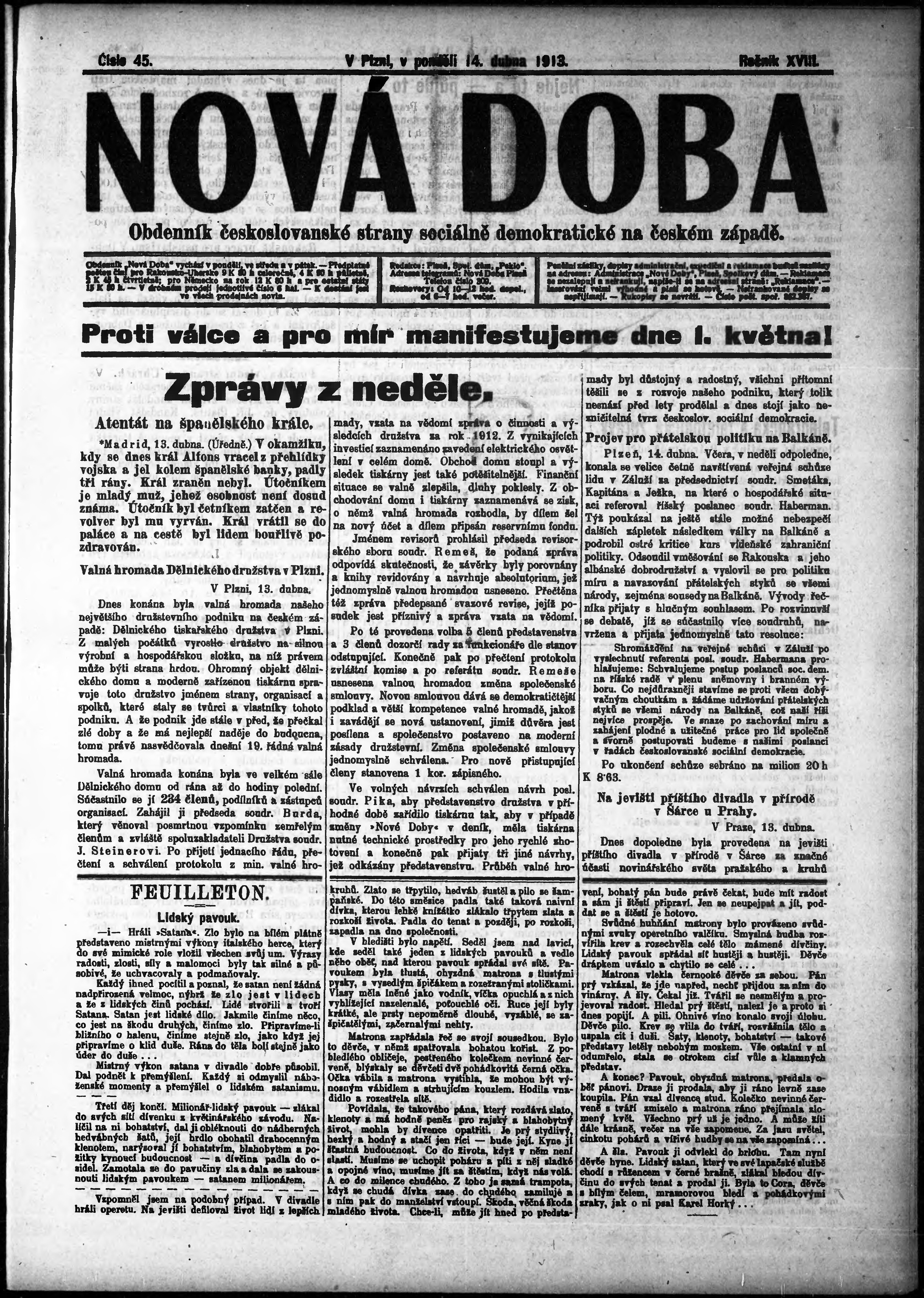 * Datum vydání výtisku: 14.4.1913 Číslo výtisku: 45