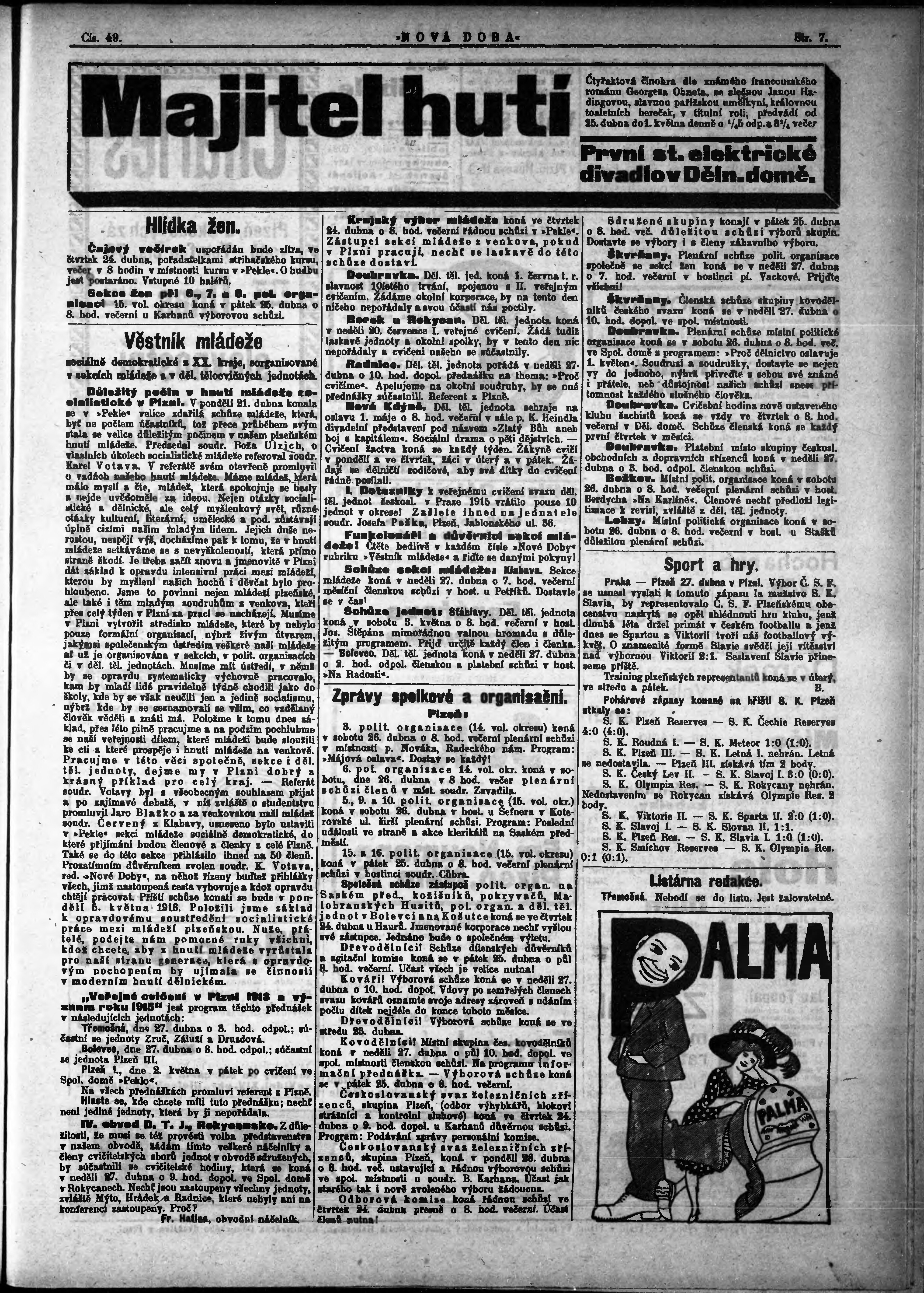 * Datum vydání výtisku: 23.4.1913 Číslo výtisku: 49