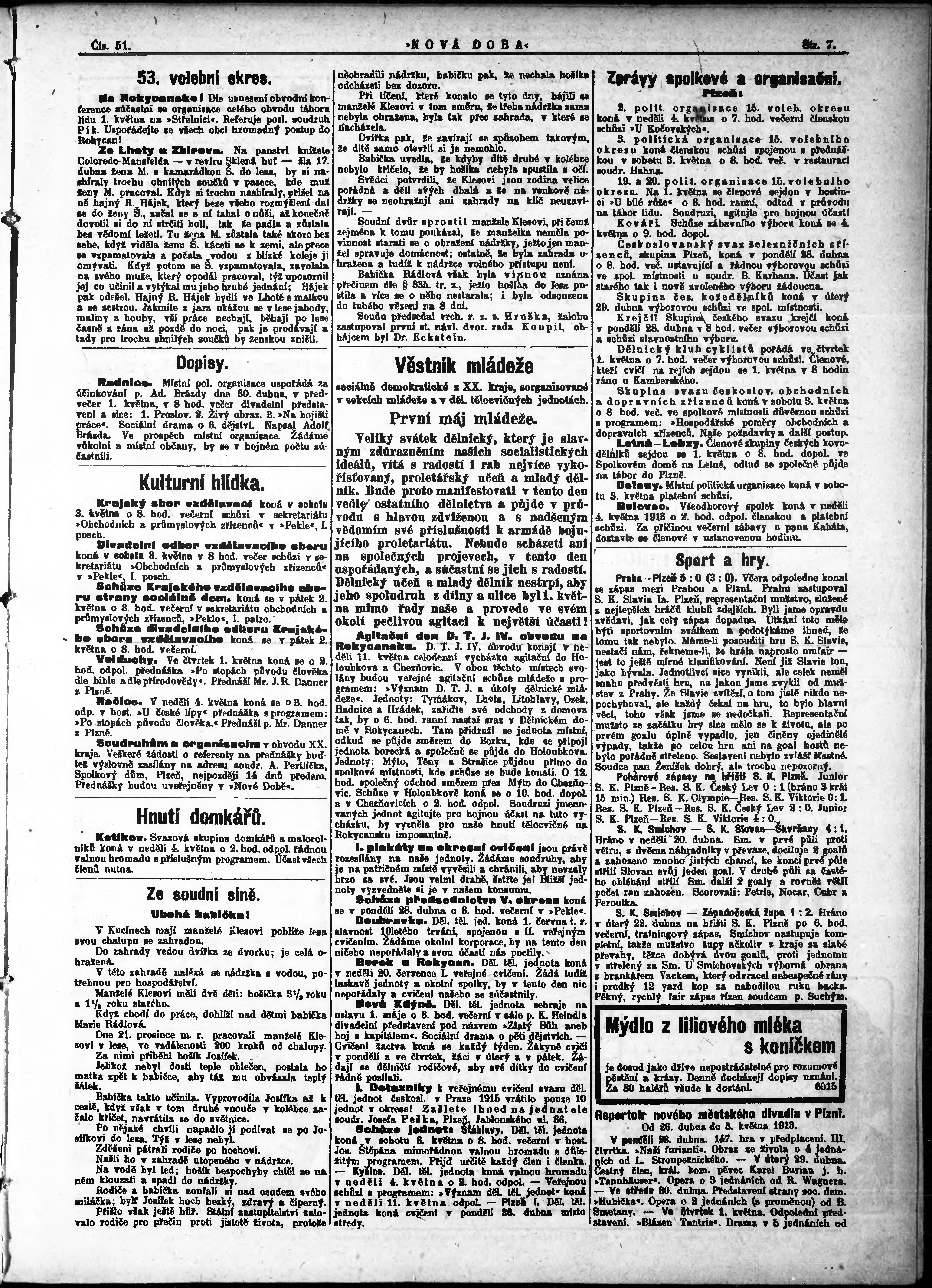 * Datum vydání výtisku: 28.4.1913 Číslo výtisku: 51
