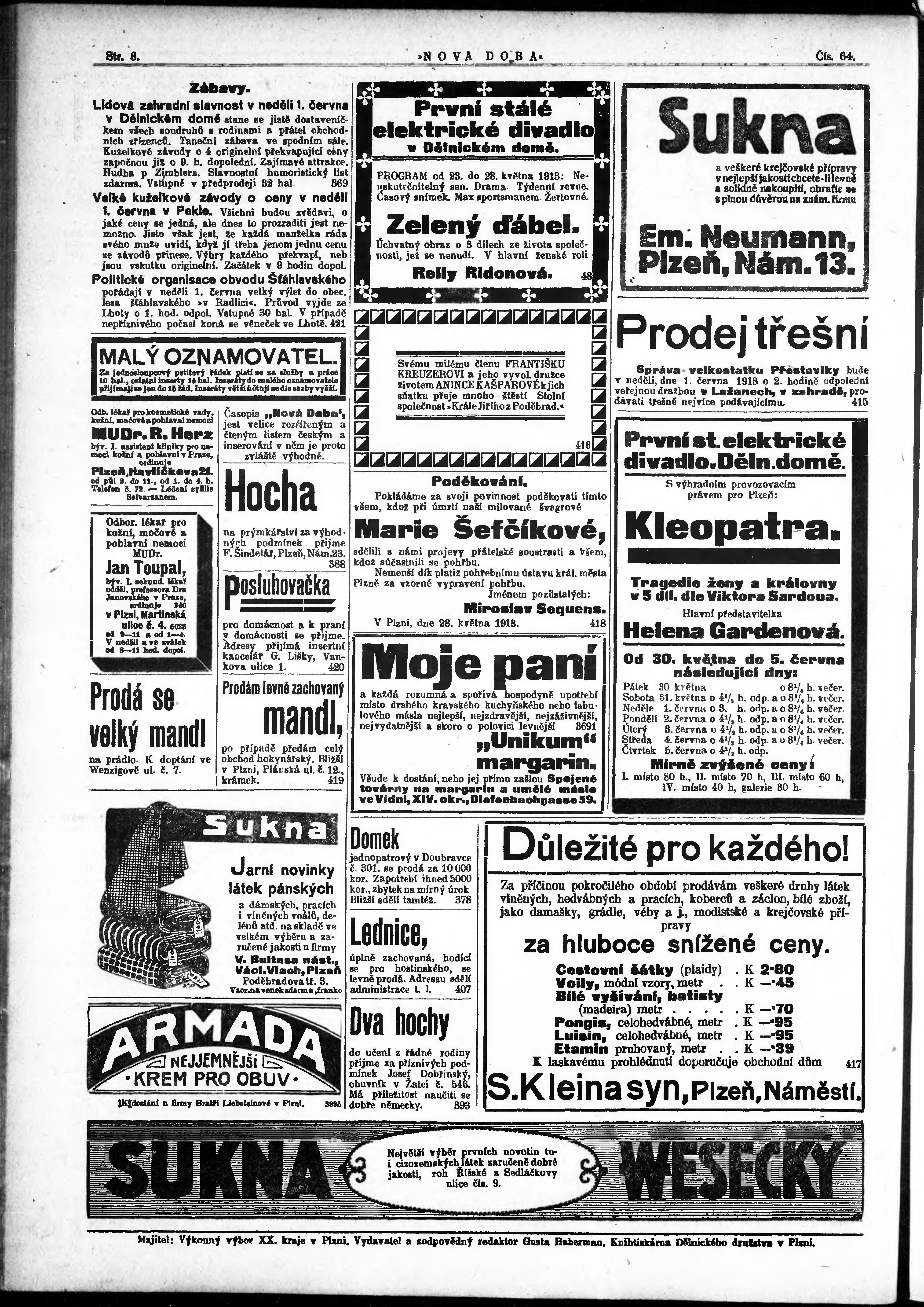 * Datum vydání výtisku: 28.5.1913 Číslo výtisku: 64