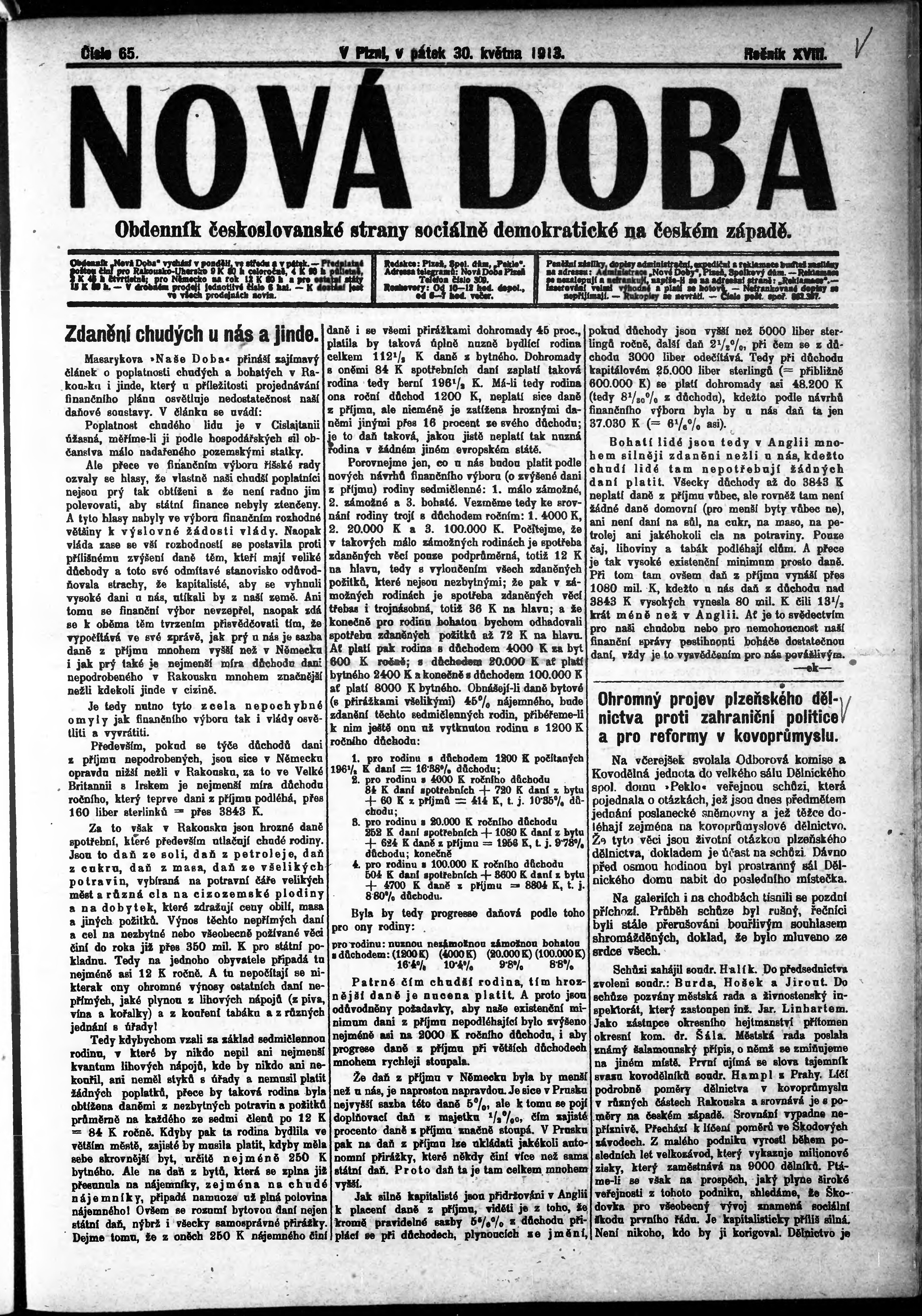 * Datum vydání výtisku: 30.5.1913 Číslo výtisku: 65