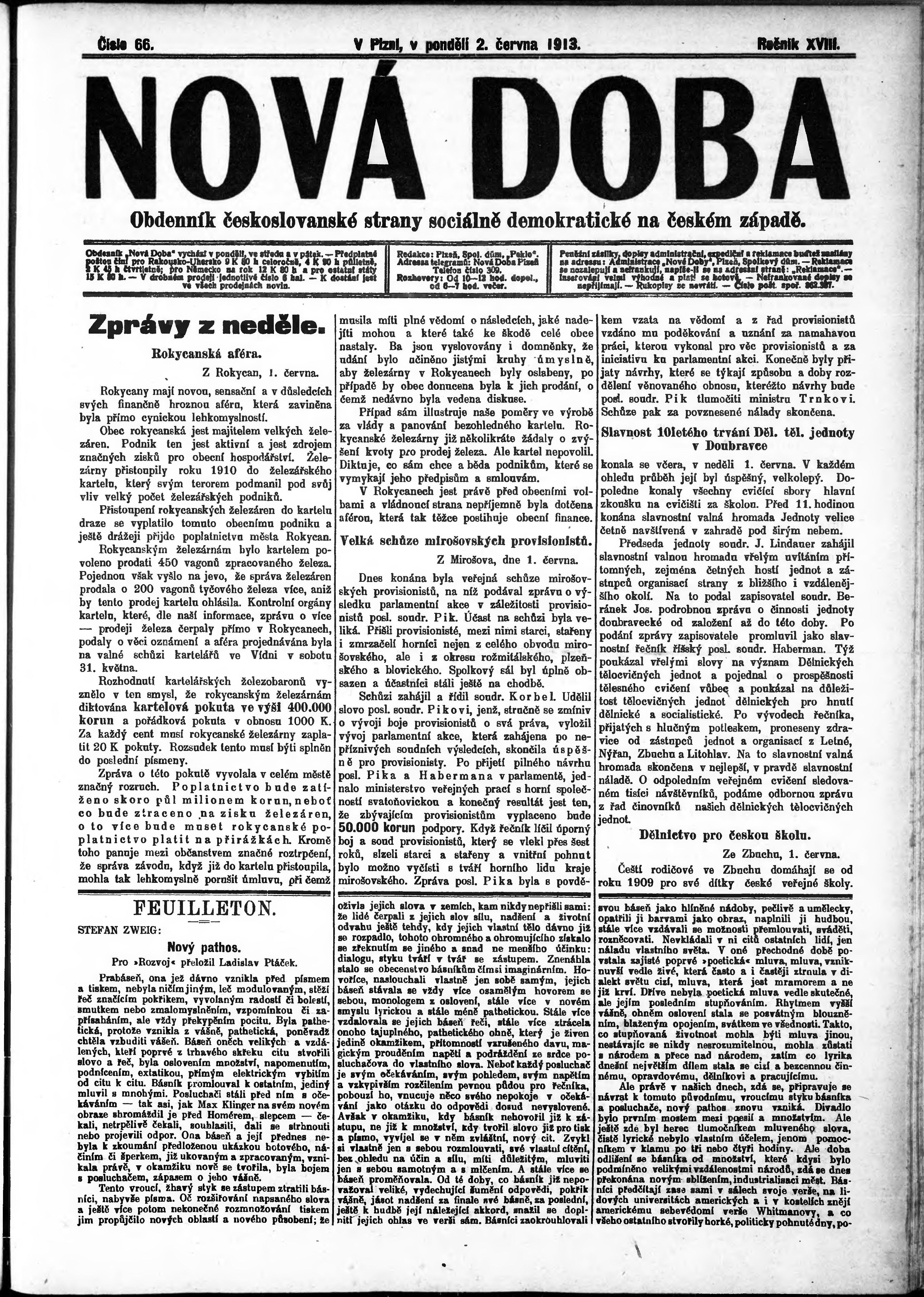 * Datum vydání výtisku: 2.6.1913 Číslo výtisku: 66
