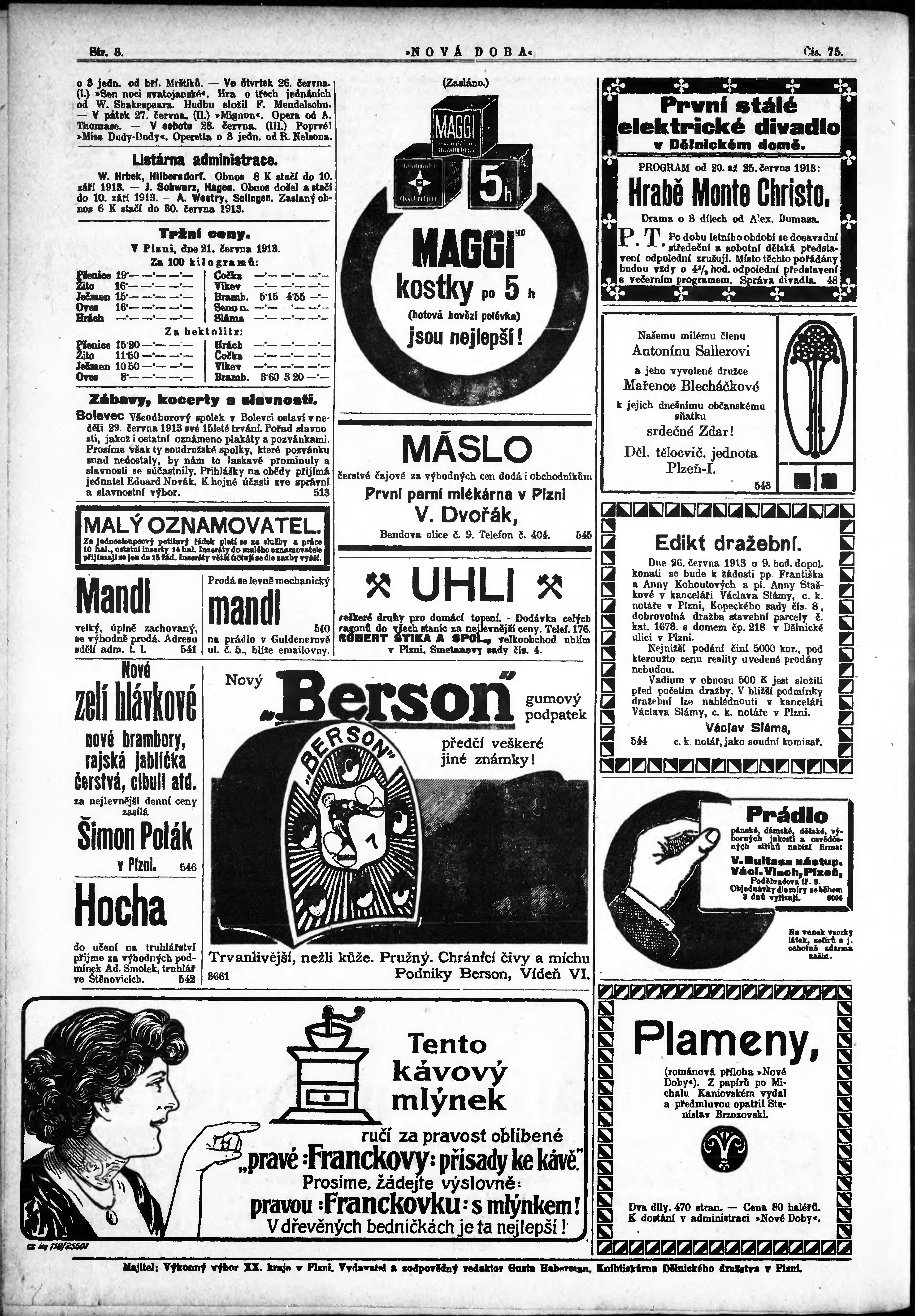 * Datum vydání výtisku: 23.6.1913 Číslo výtisku: 75