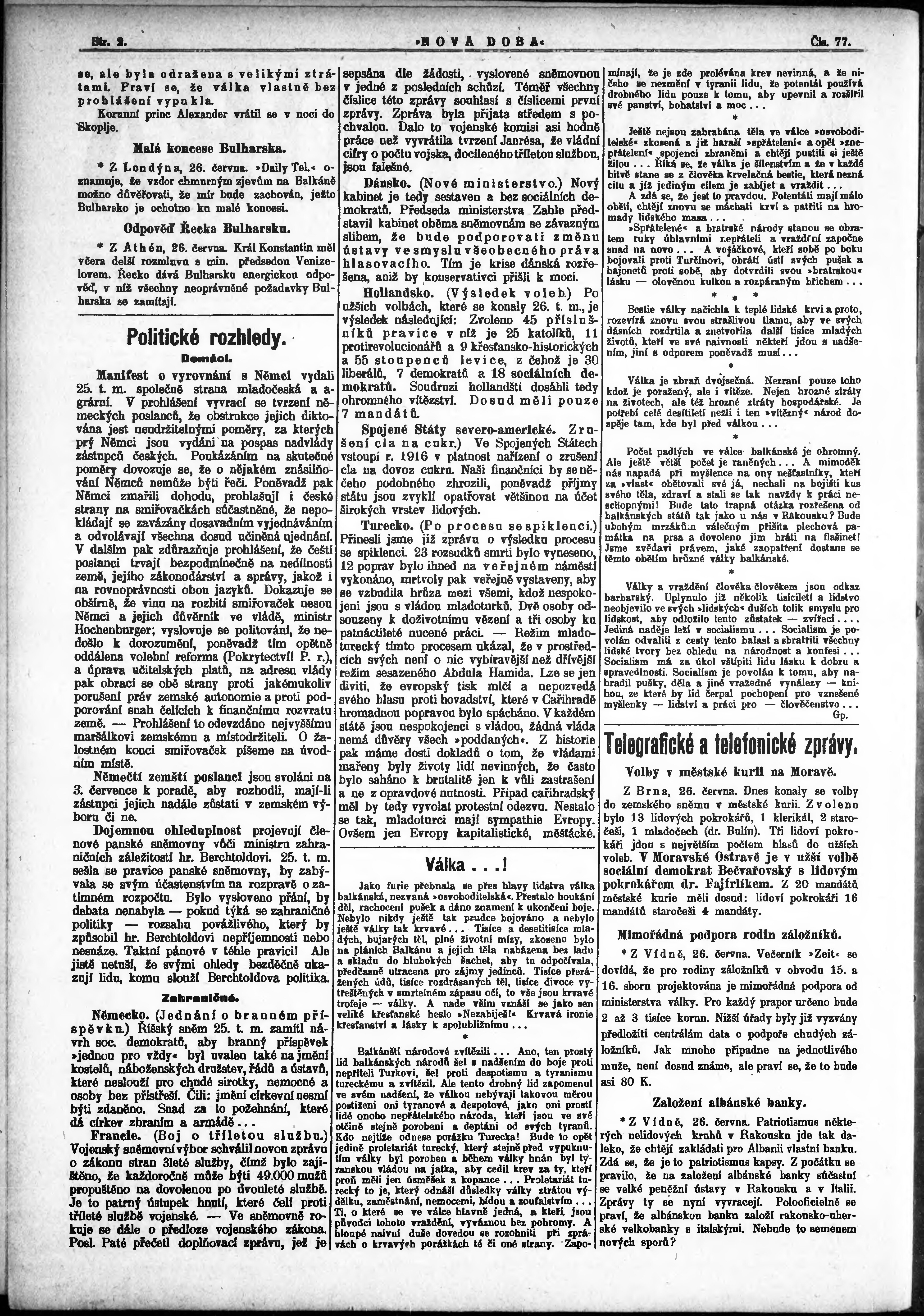 * Datum vydání výtisku: 27.6.1913 Číslo výtisku: 77