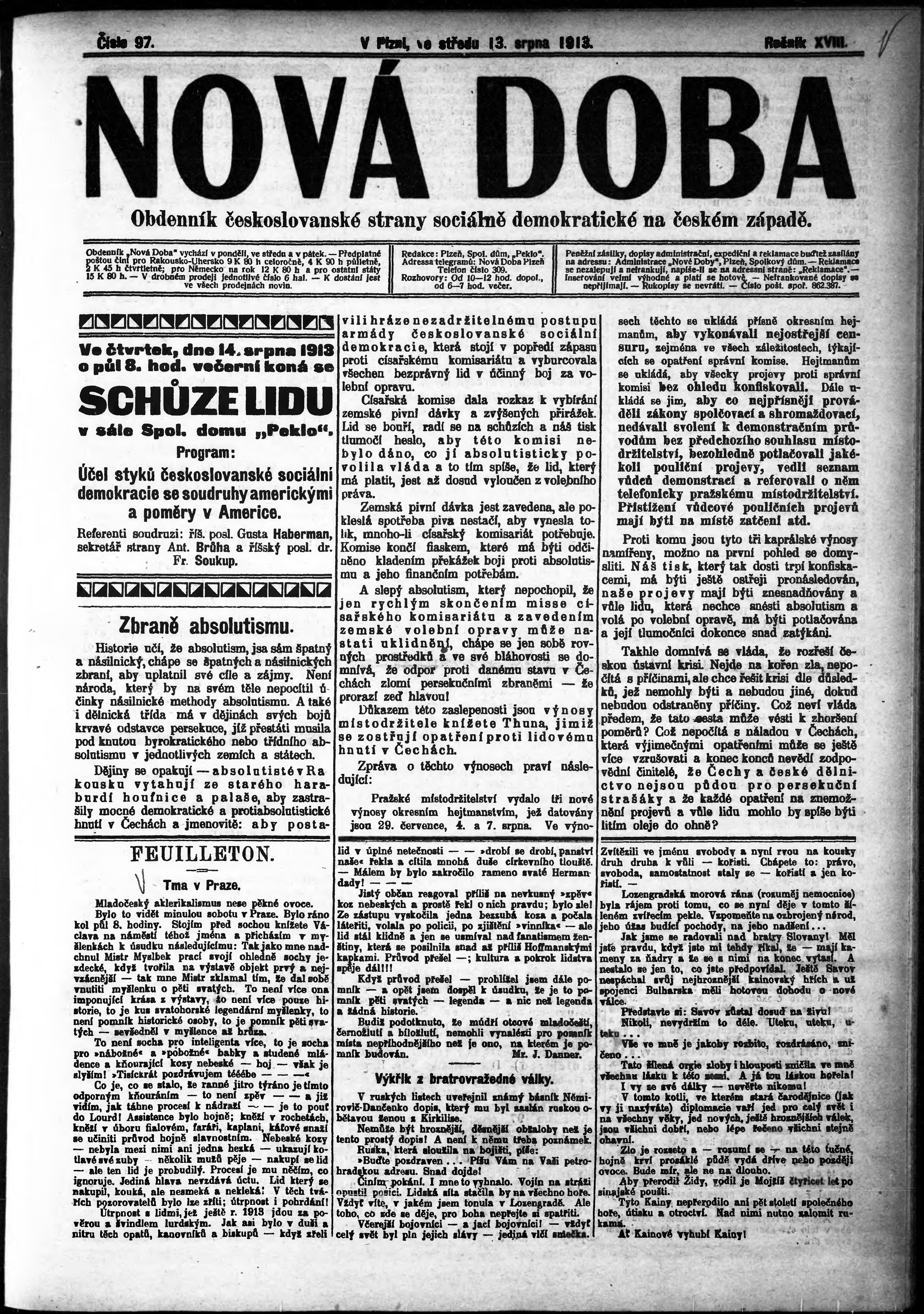 * Datum vydání výtisku: 13.8.1913 Číslo výtisku: 97