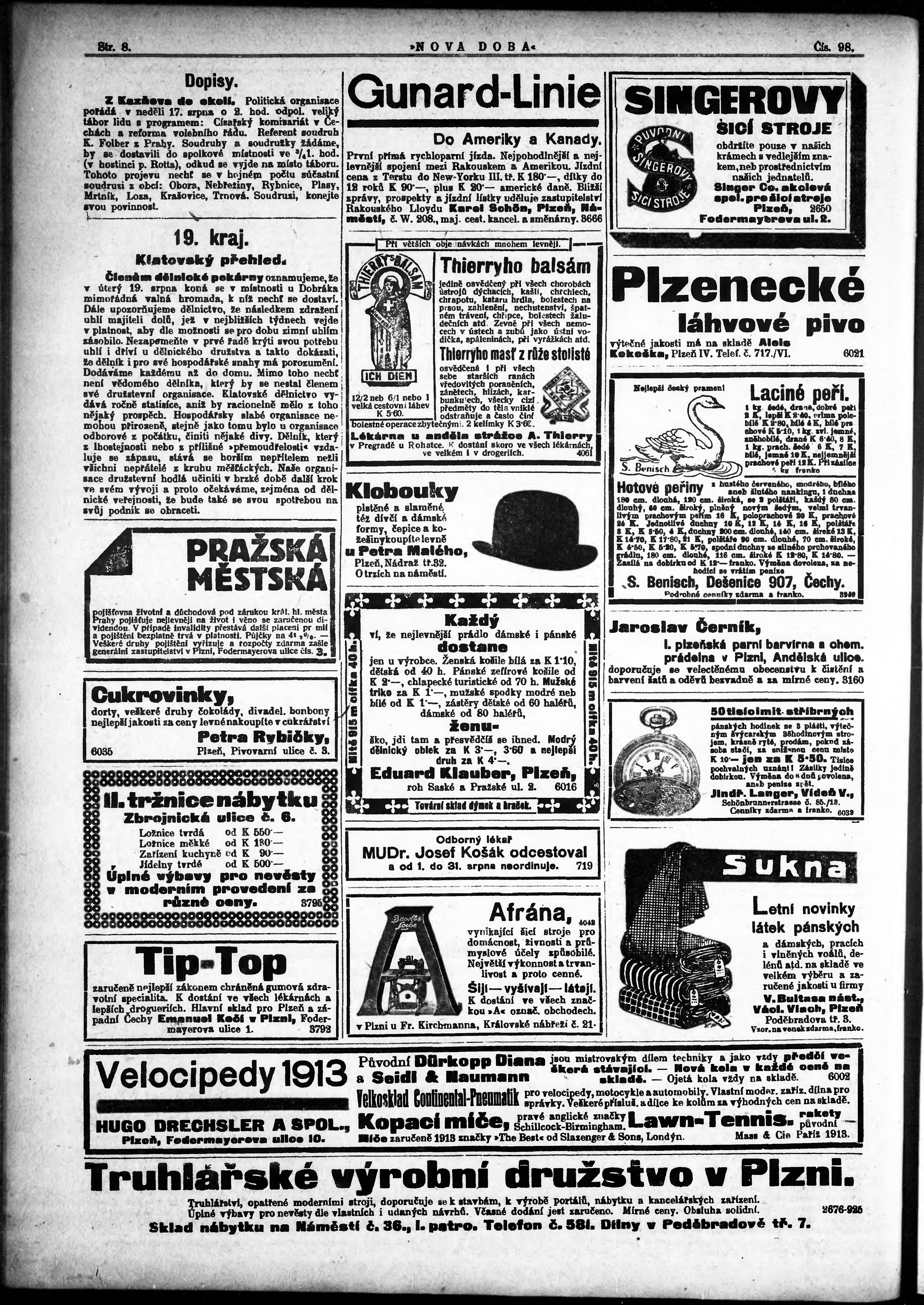 * Datum vydání výtisku: 15.8.1913 Číslo výtisku: 98