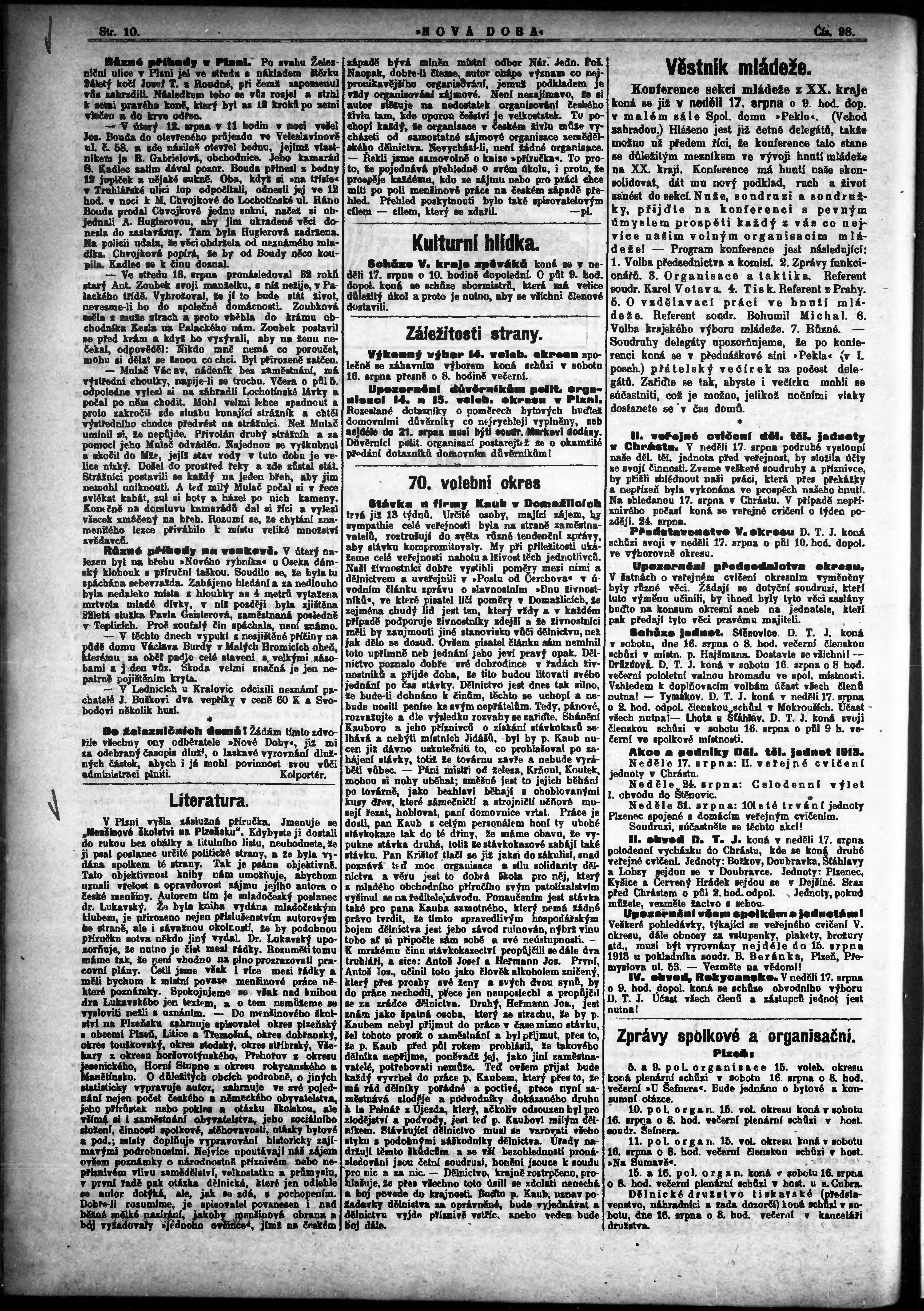 * Datum vydání výtisku: 15.8.1913 Číslo výtisku: 98