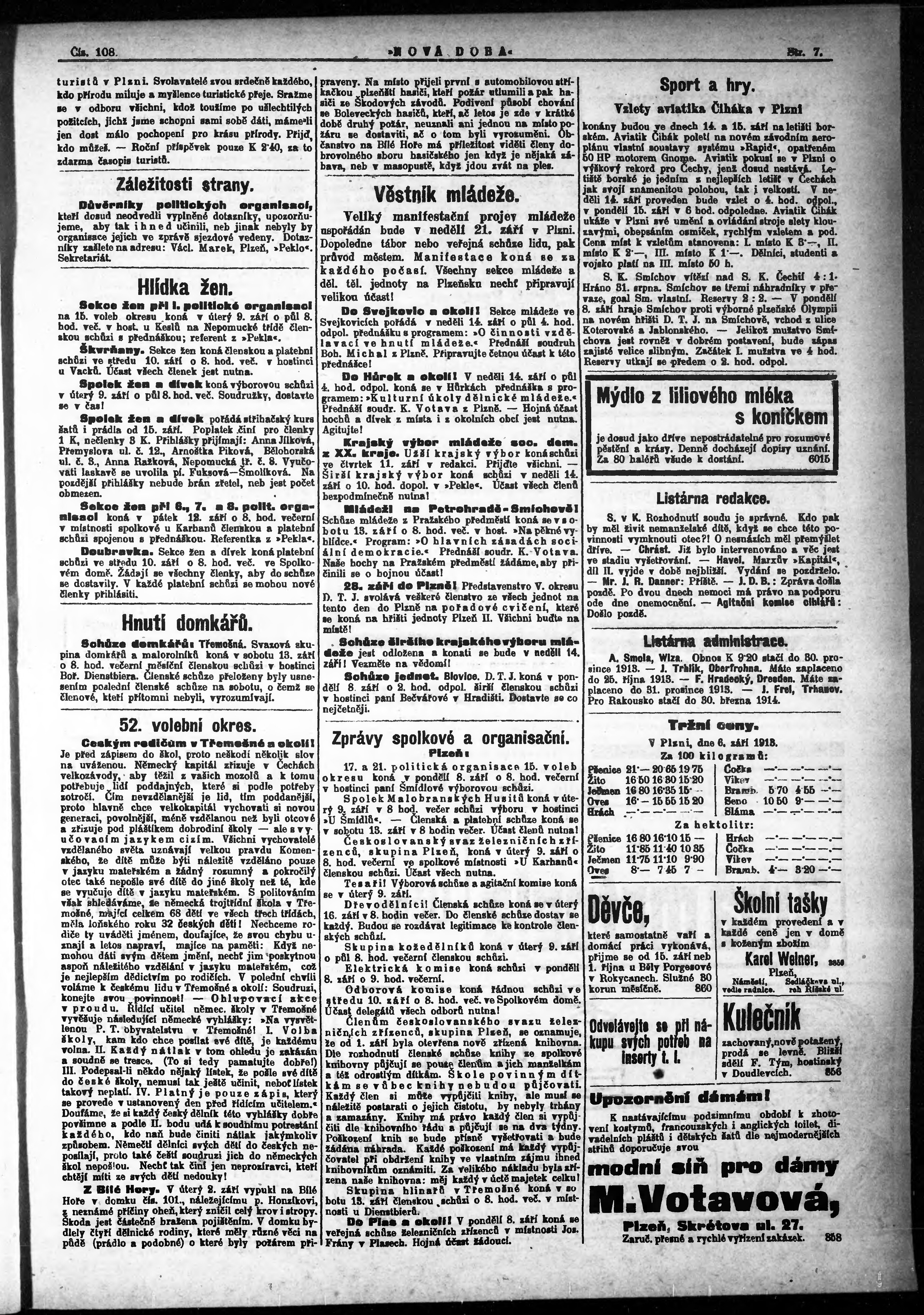 * Datum vydání výtisku: 8.9.1913 Číslo výtisku: 108