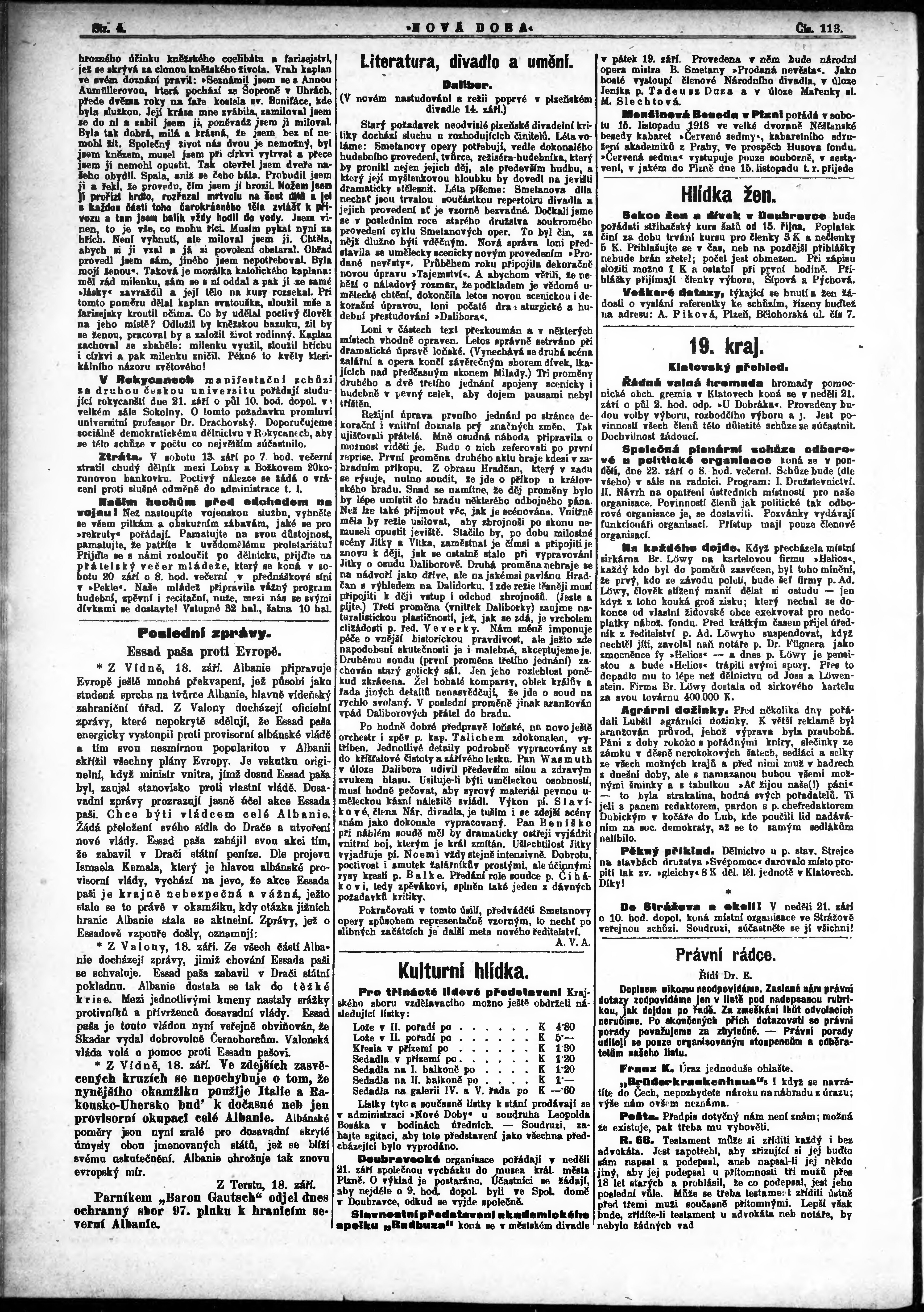 * Datum vydání výtisku: 19.9.1913 Číslo výtisku: 113