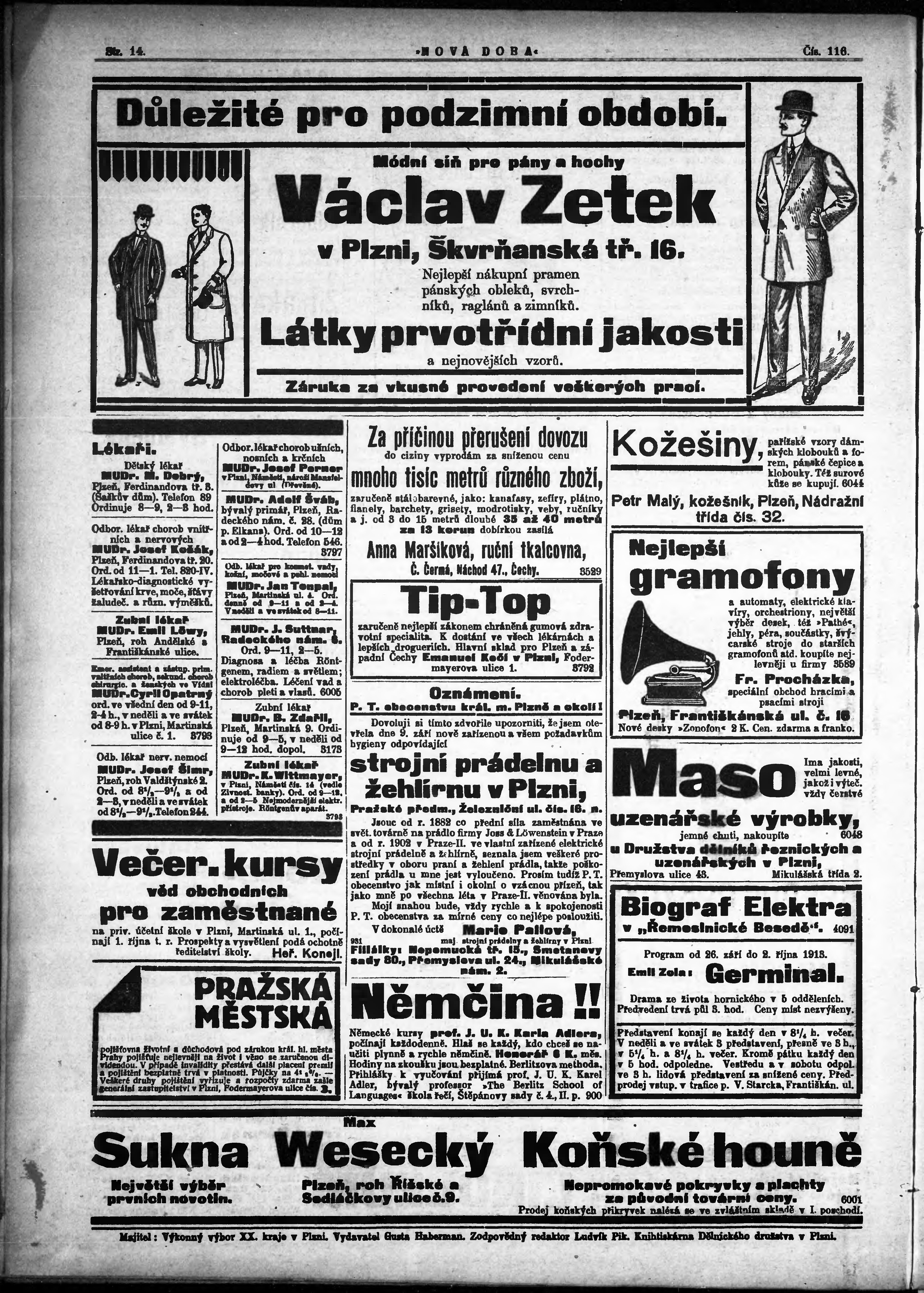 * Datum vydání výtisku: 26.9.1913 Číslo výtisku: 116
