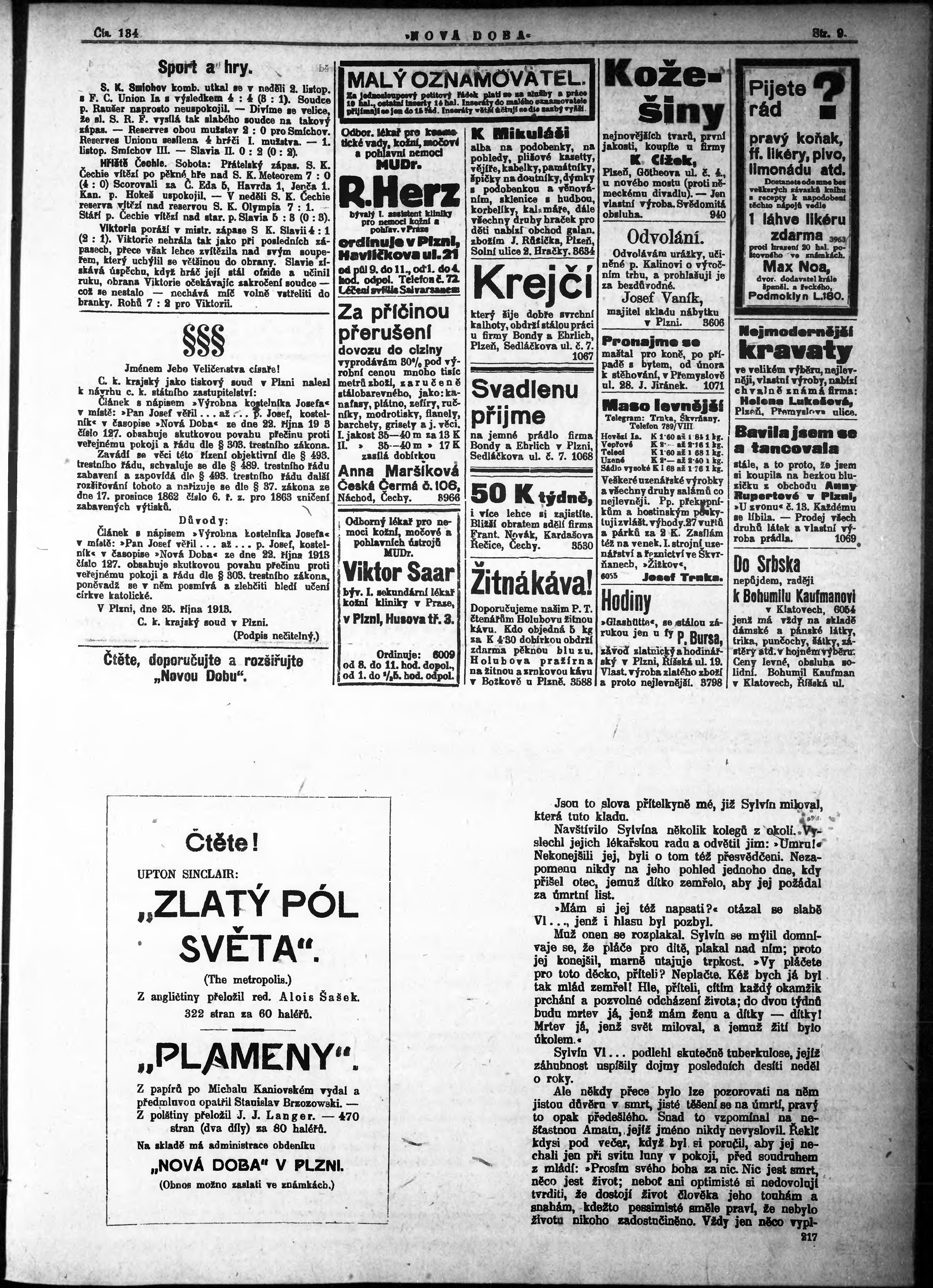 * Datum vydání výtisku: 7.11.1913 Číslo výtisku: 134
