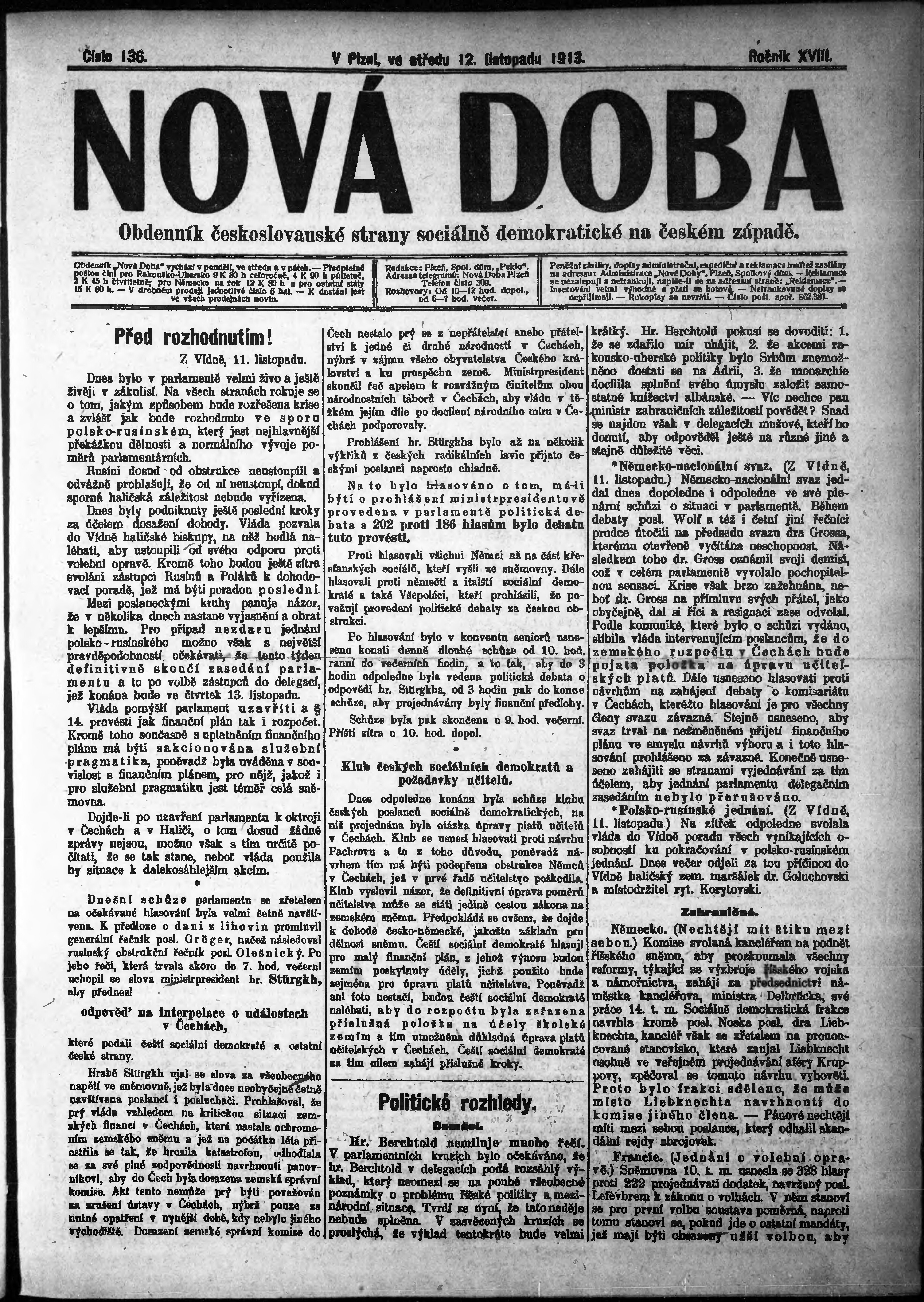 * Datum vydání výtisku: 12.11.1913 Číslo výtisku: 136
