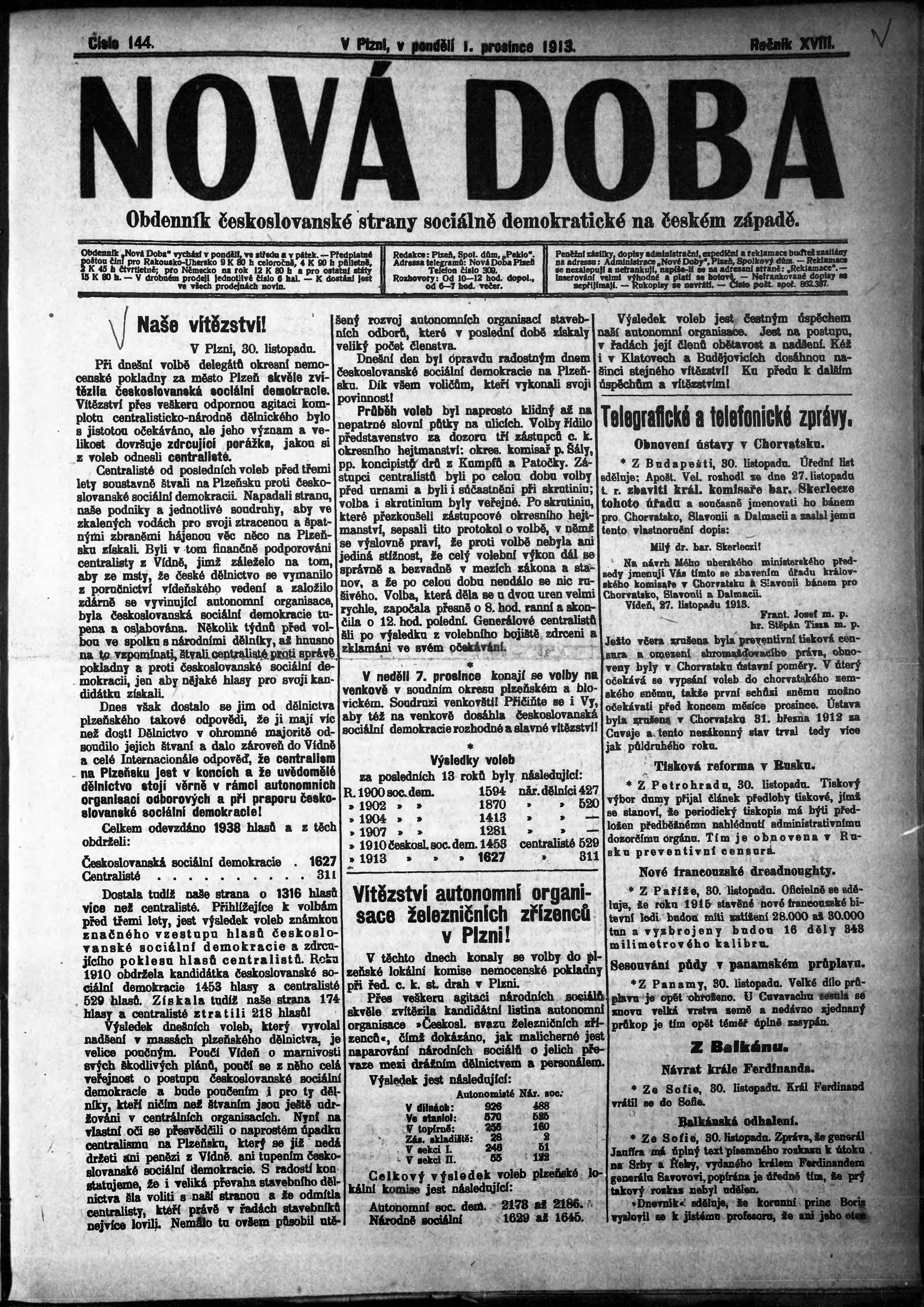 * Datum vydání výtisku: 1.12.1913 Číslo výtisku: 144