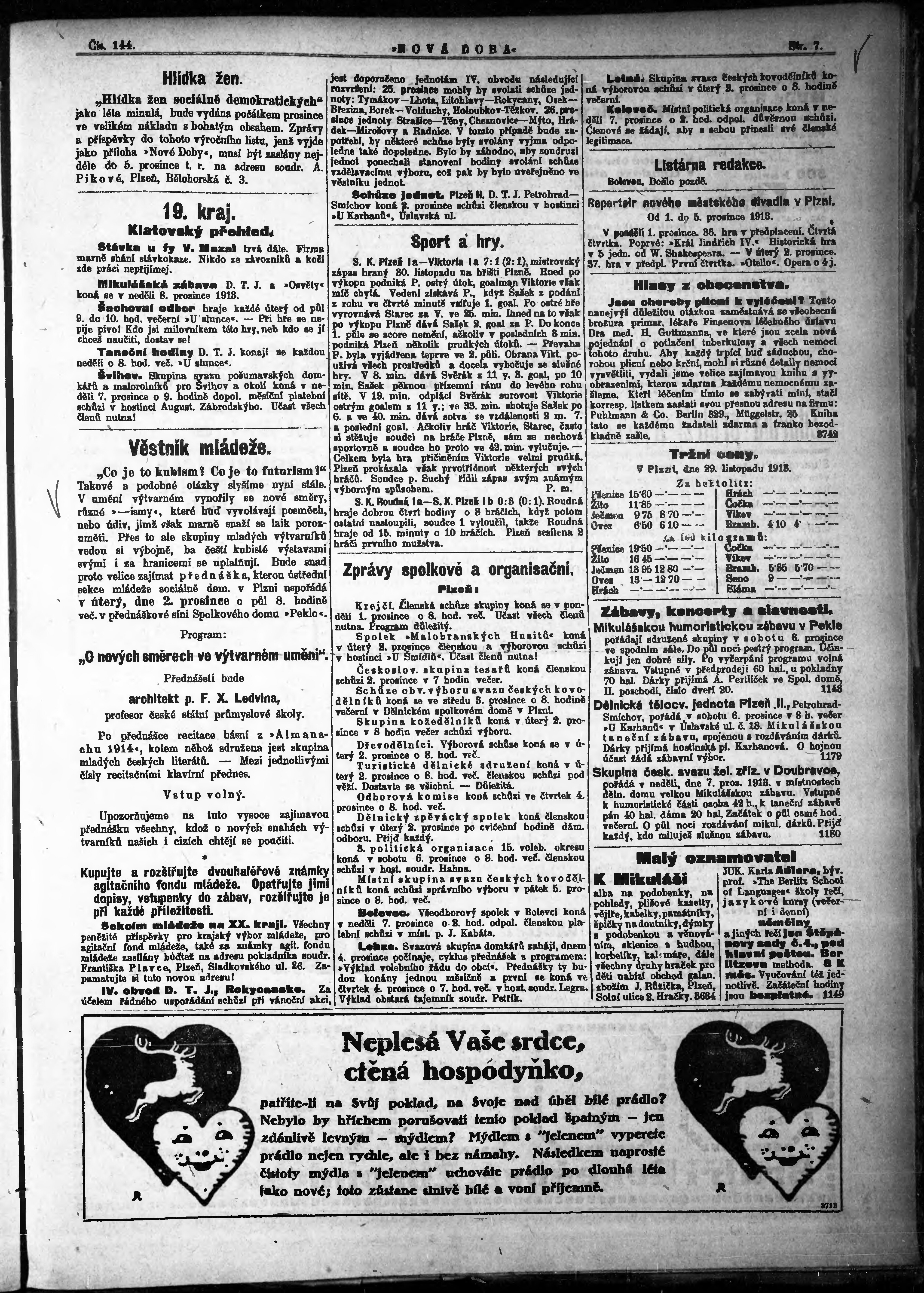* Datum vydání výtisku: 1.12.1913 Číslo výtisku: 144