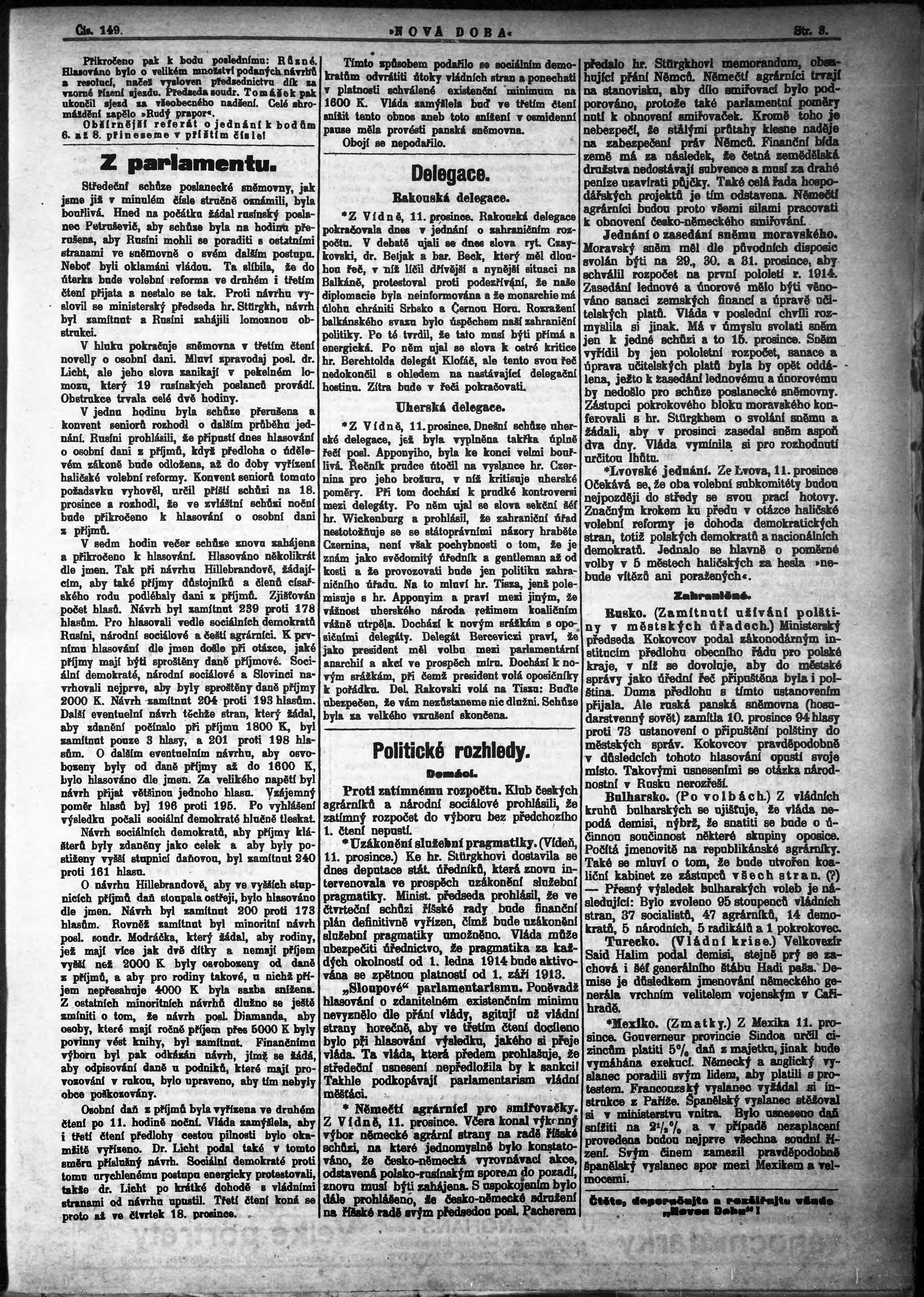* Datum vydání výtisku: 12.12.1913 Číslo výtisku: 149