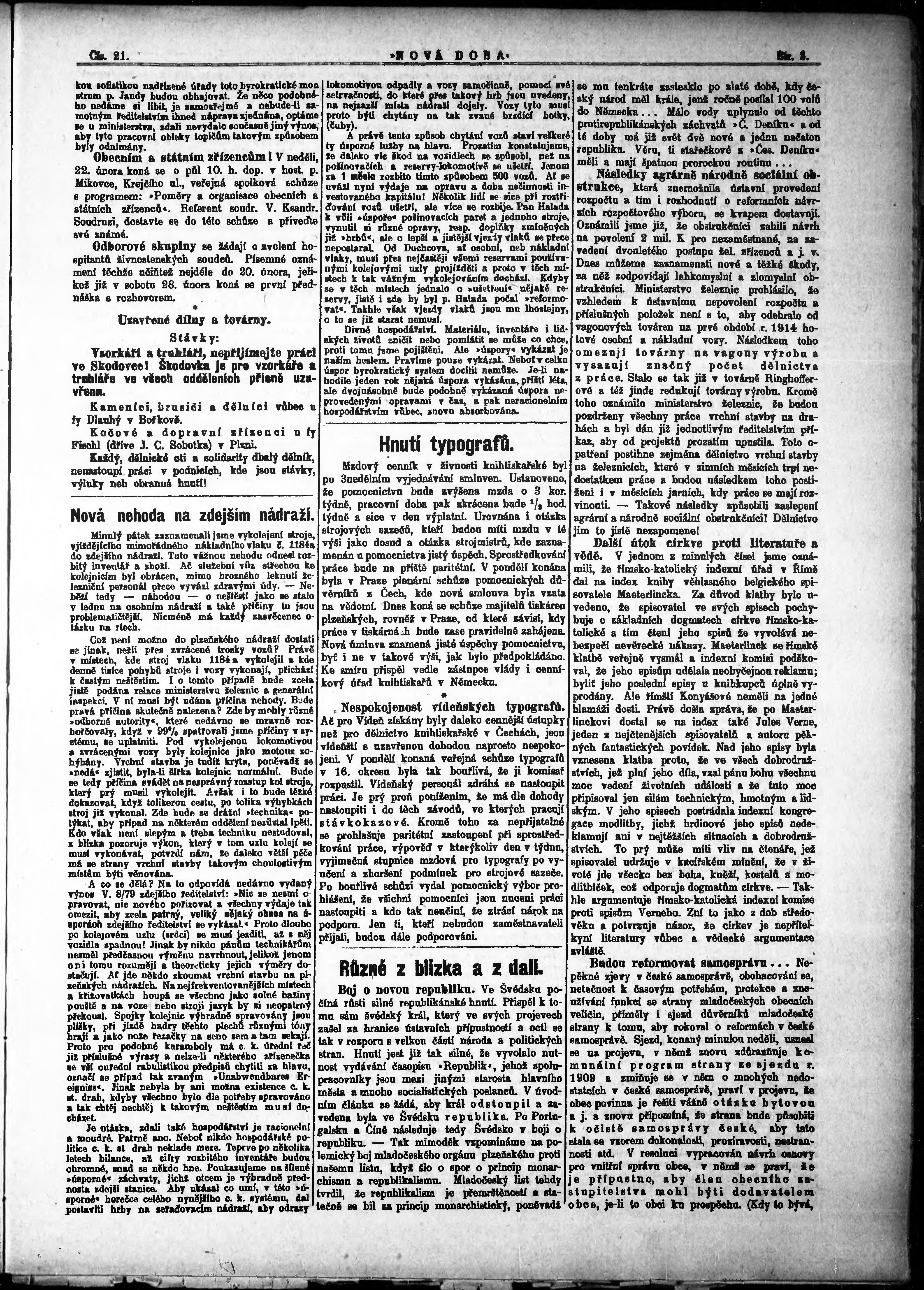 * Datum vydání výtisku: 18.2.1914 Číslo výtisku: 21