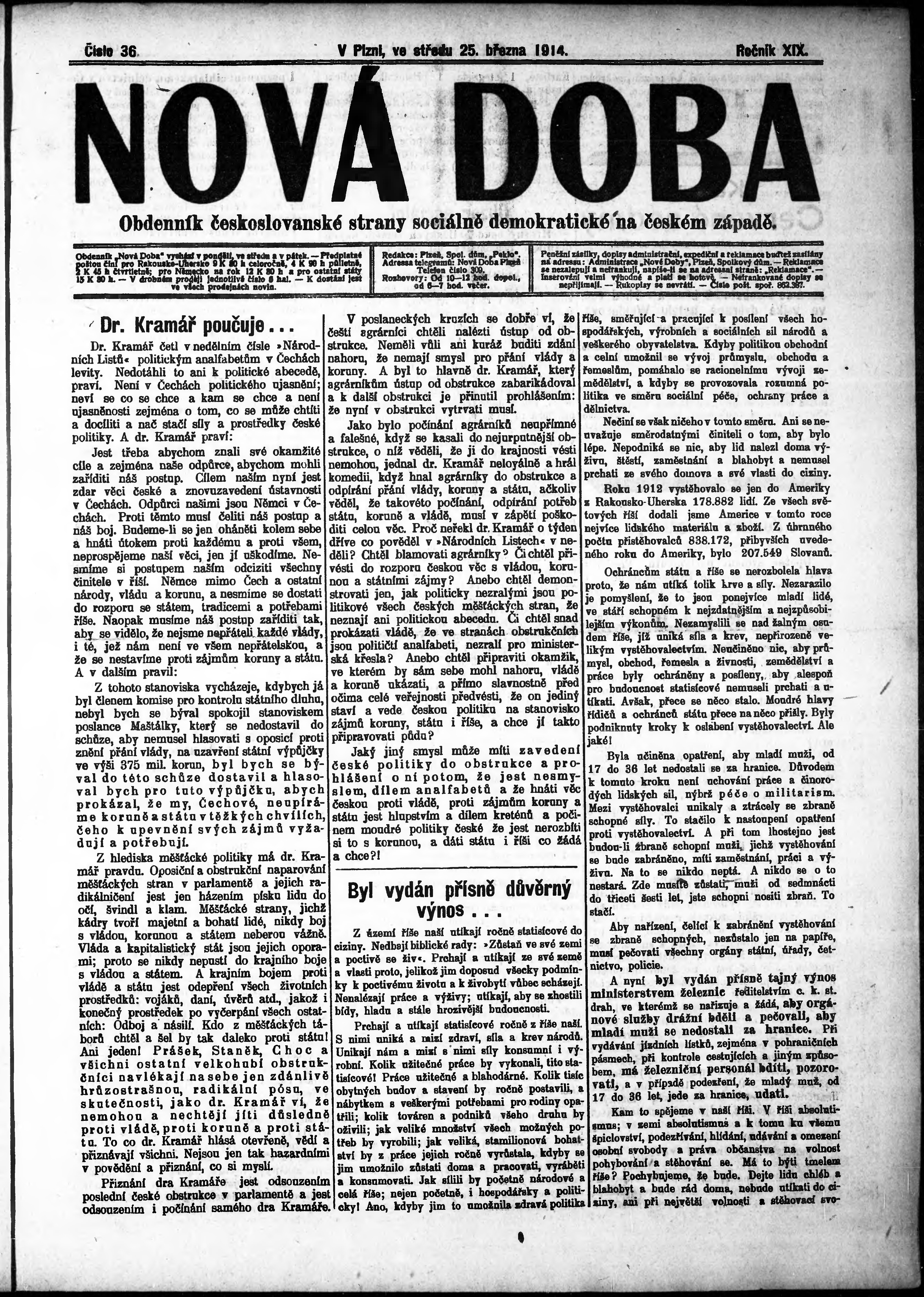 * Datum vydání výtisku: 25.3.1914 Číslo výtisku: 36