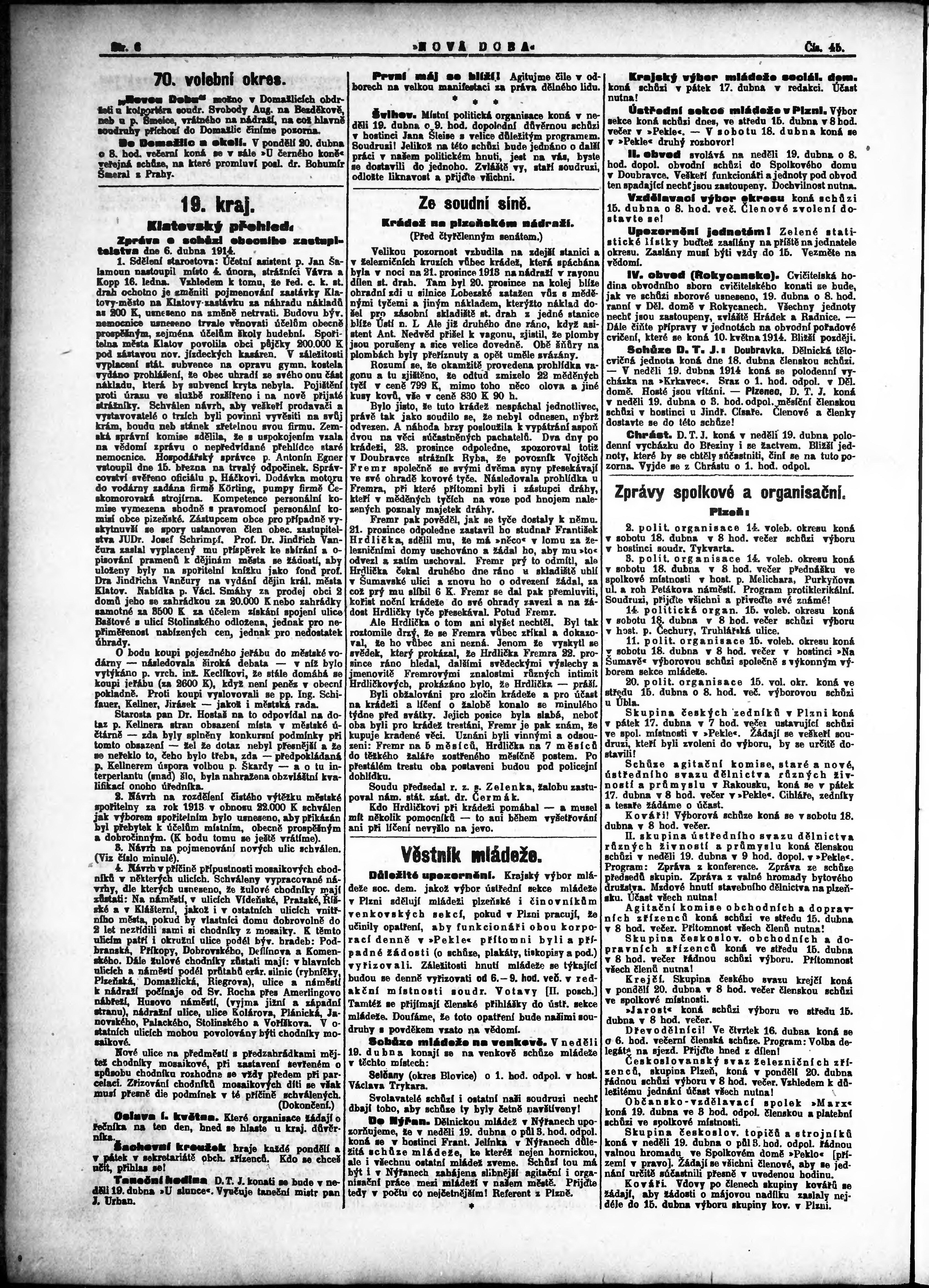 * Datum vydání výtisku: 15.4.1914 Číslo výtisku: 45