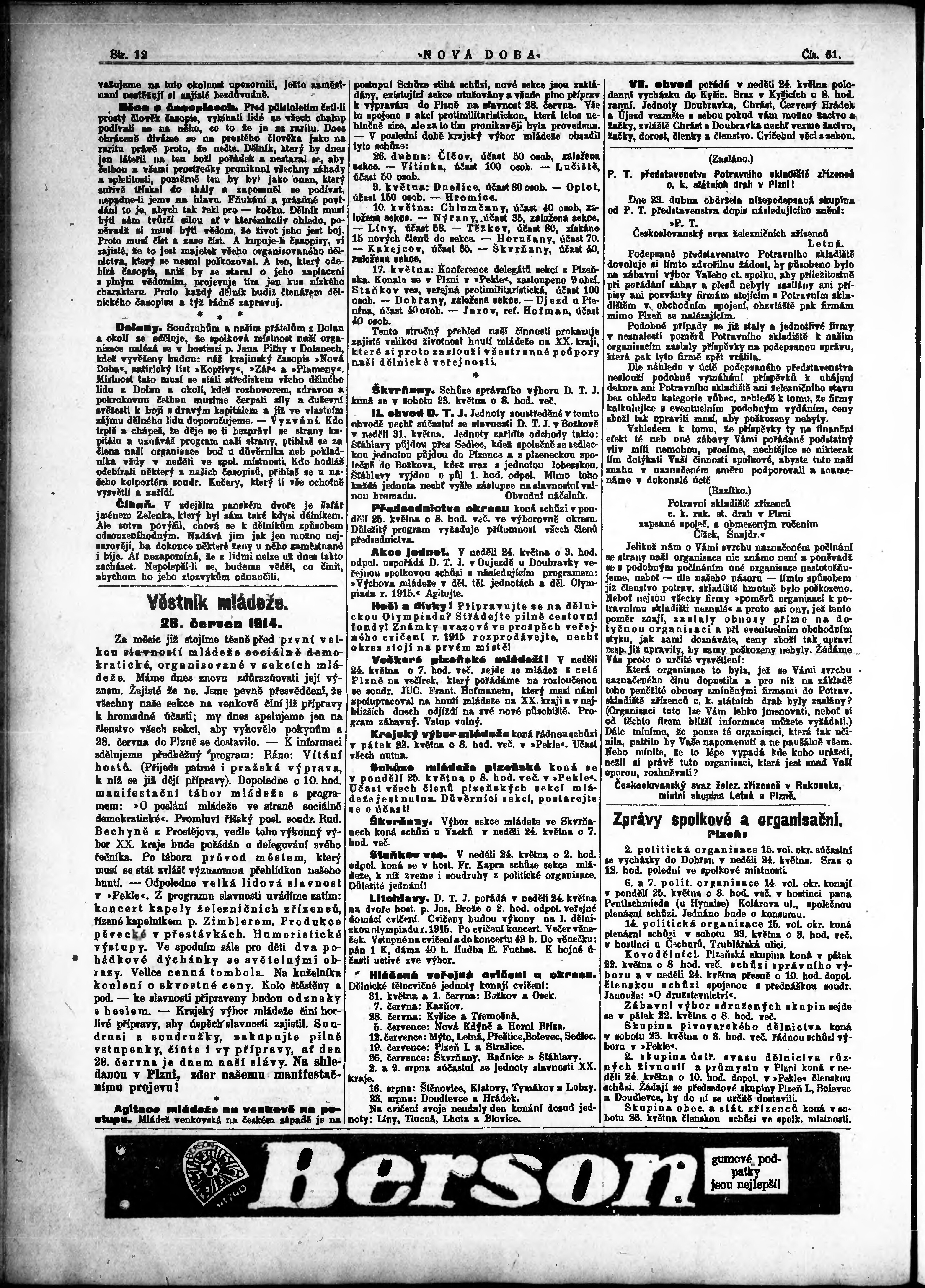 * Datum vydání výtisku: 22.5.1914 Číslo výtisku: 61