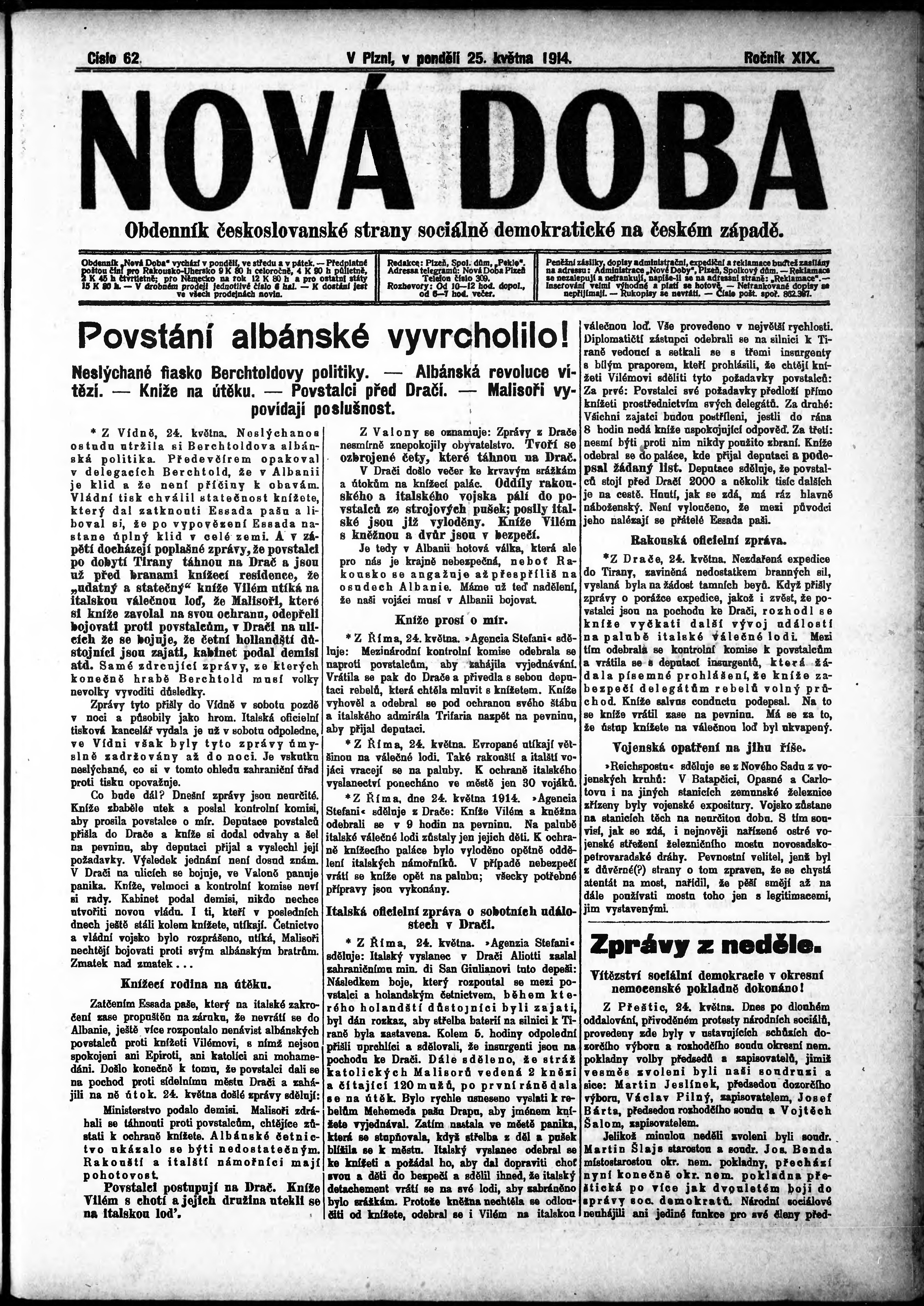 * Datum vydání výtisku: 25.5.1914 Číslo výtisku: 62