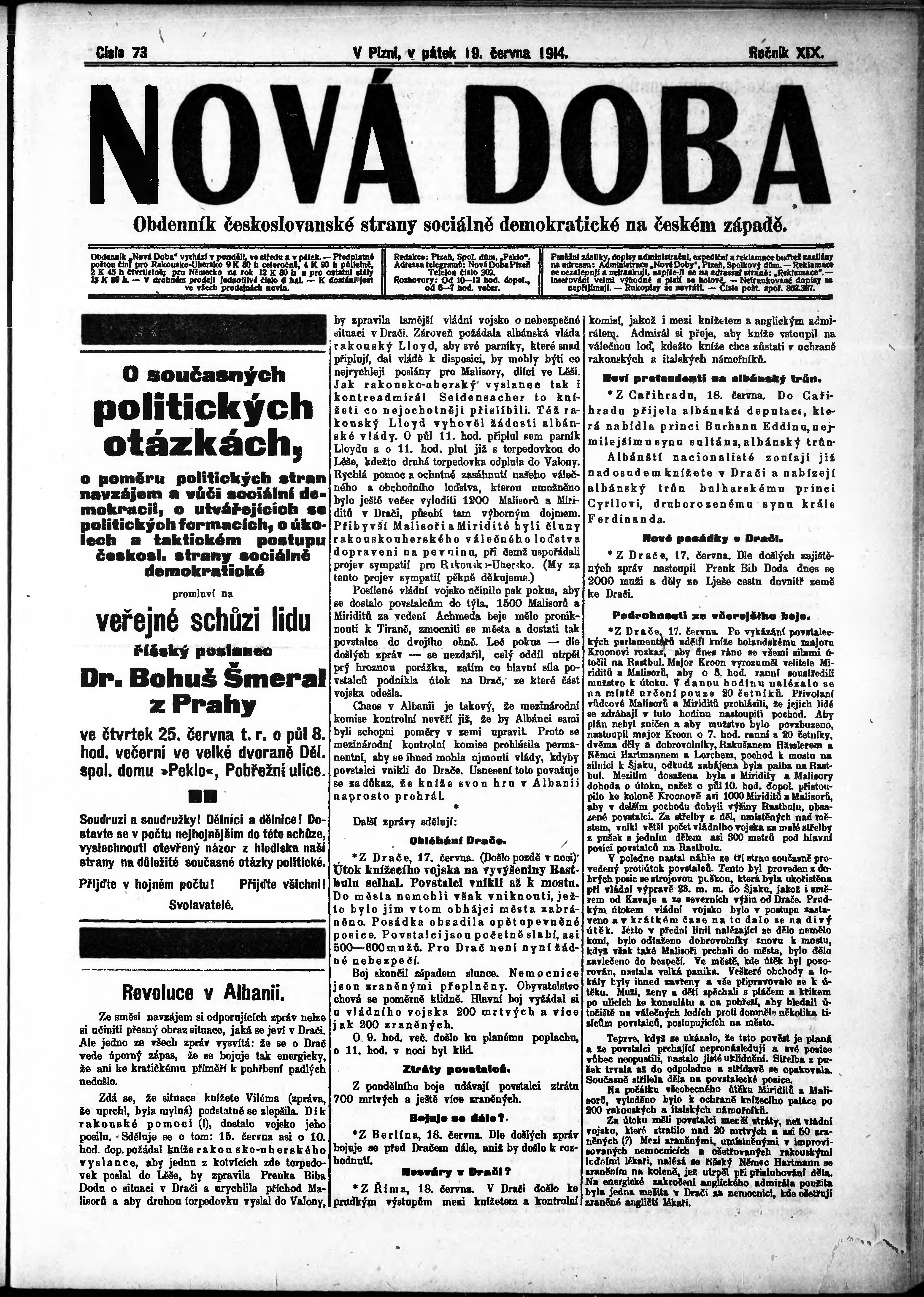 * Datum vydání výtisku: 19.6.1914 Číslo výtisku: 73