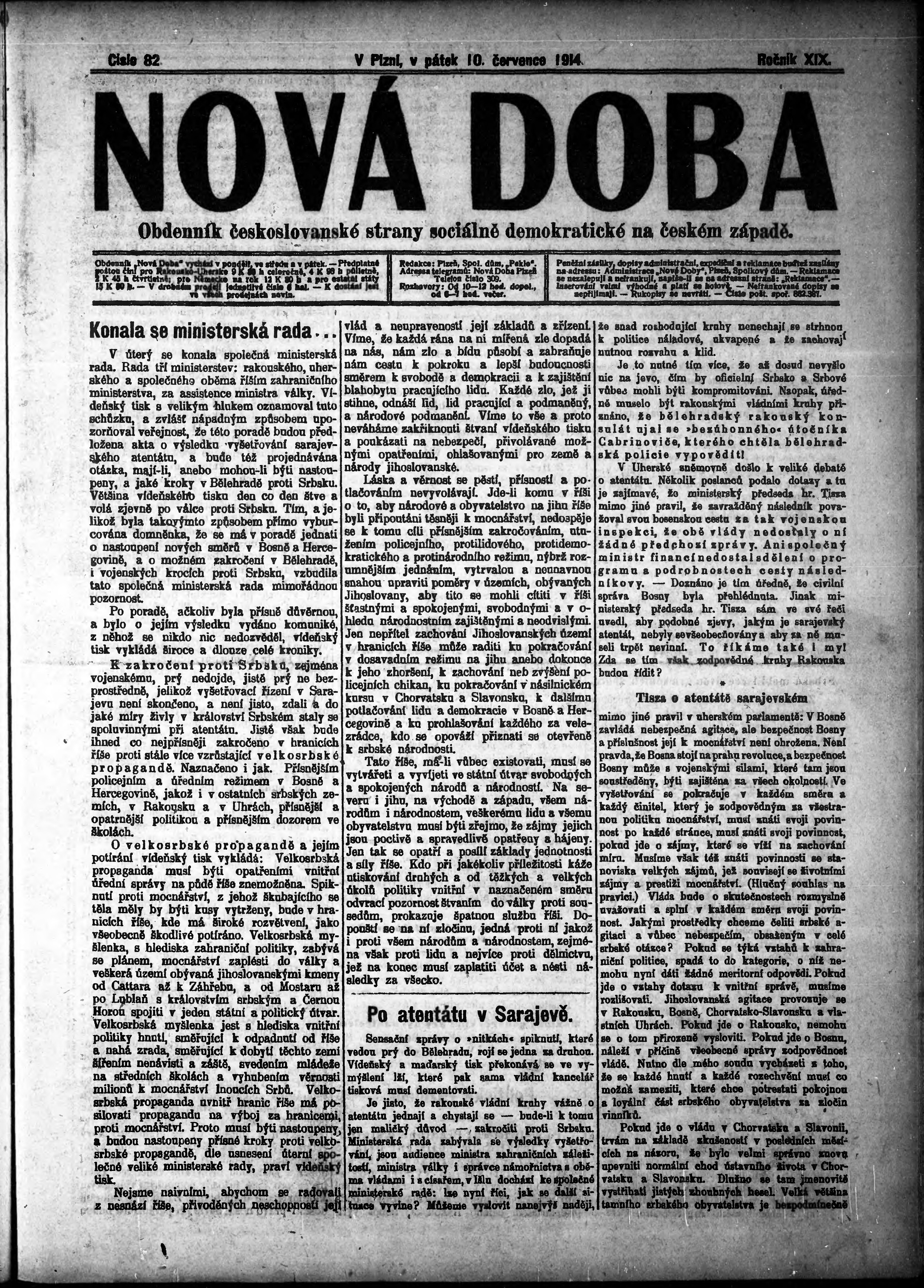* Datum vydání výtisku: 10.7.1914 Číslo výtisku: 82