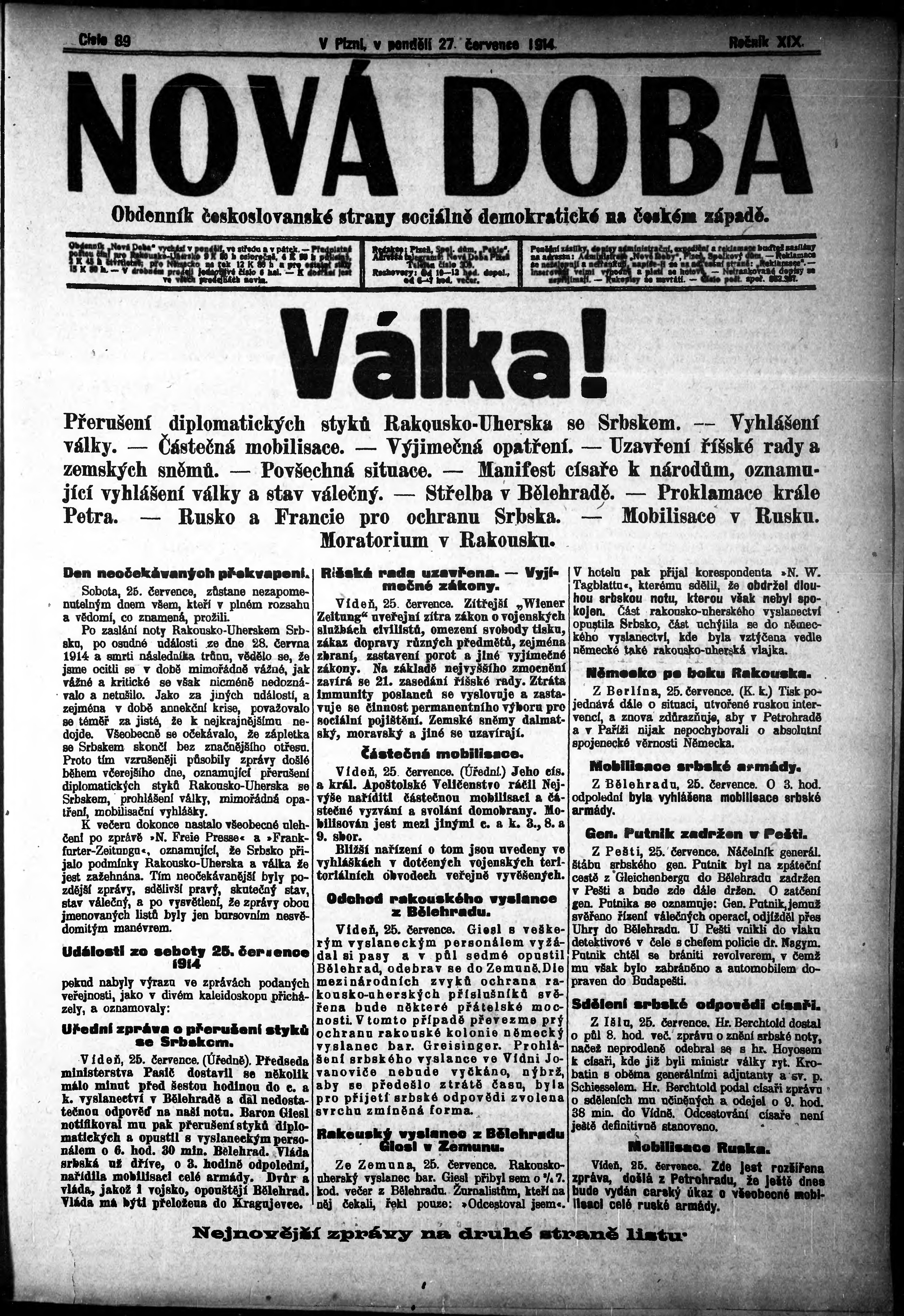 * Datum vydání výtisku: 27.7.1914 Číslo výtisku: 89