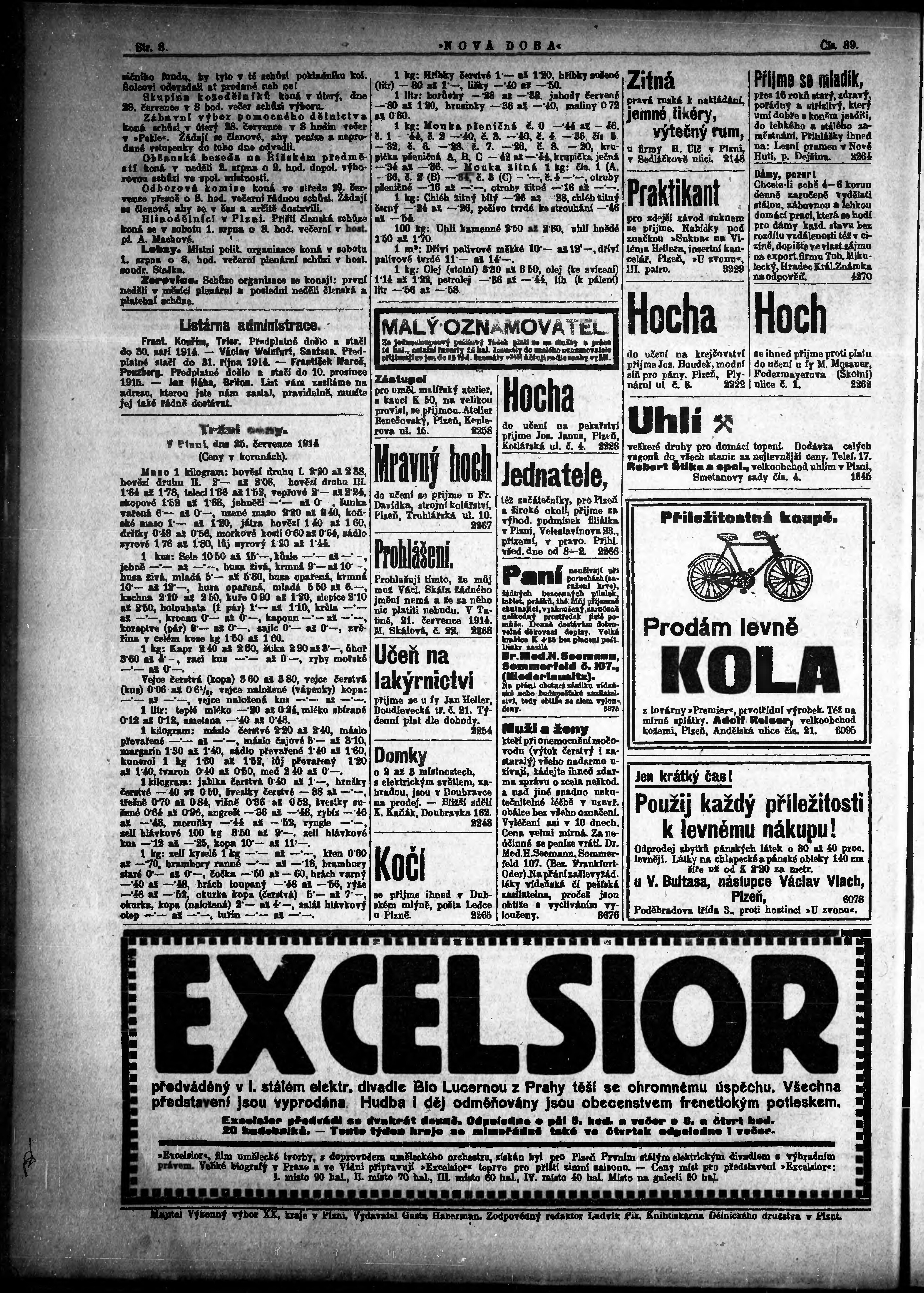 * Datum vydání výtisku: 27.7.1914 Číslo výtisku: 89