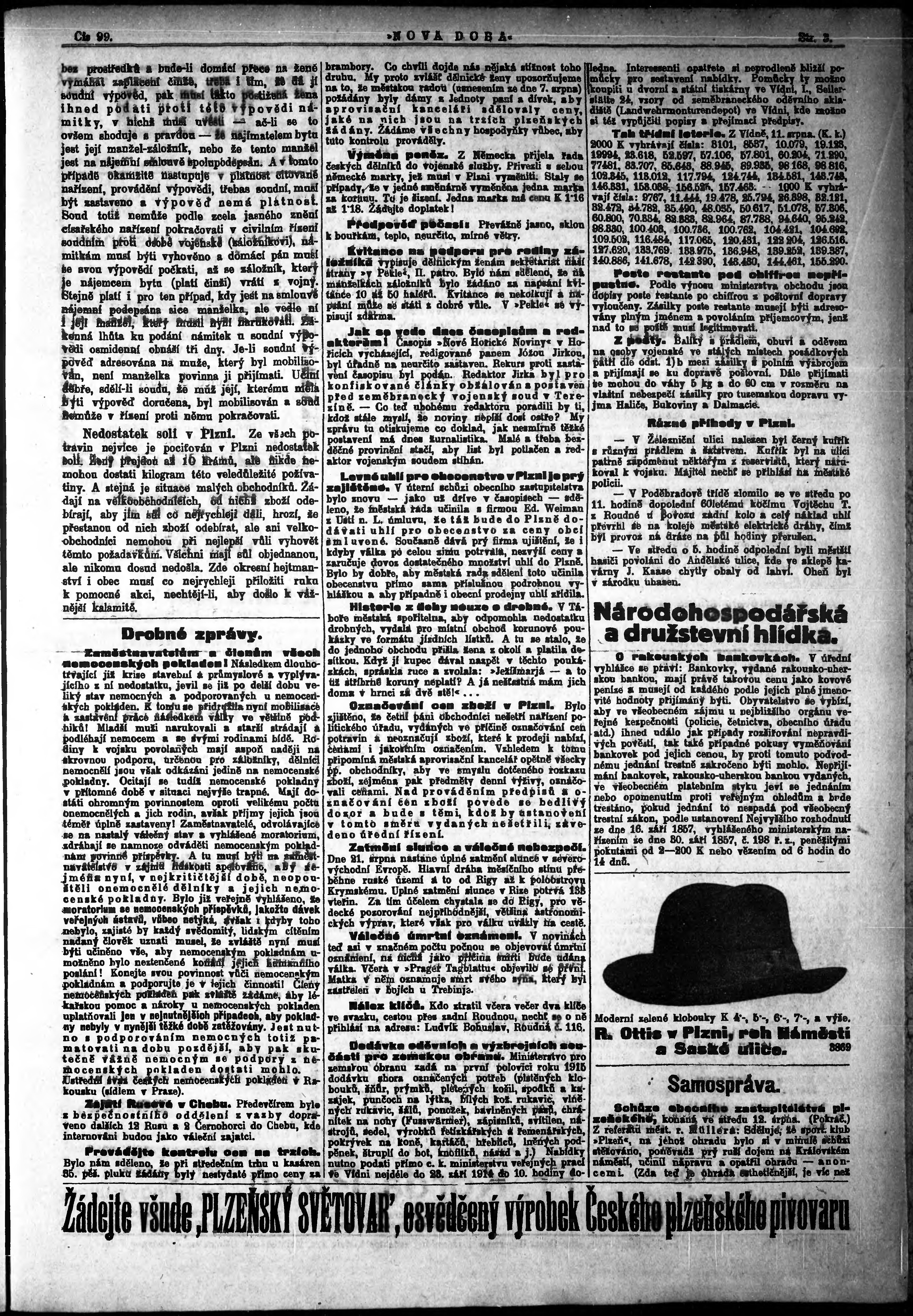 * Datum vydání výtisku: 13.8.1914 Číslo výtisku: 99