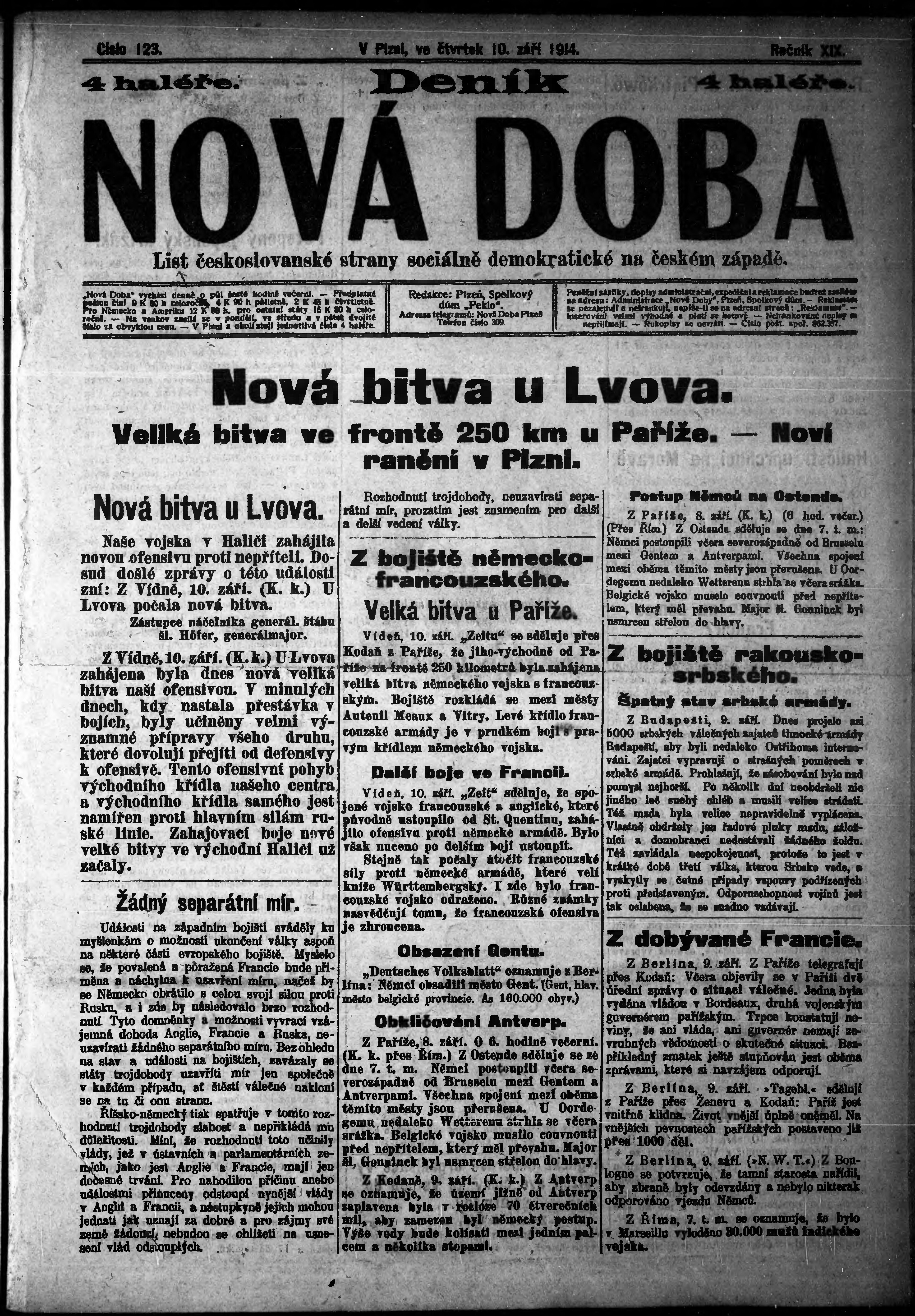 * Datum vydání výtisku: 10.9.1914 Číslo výtisku: 123