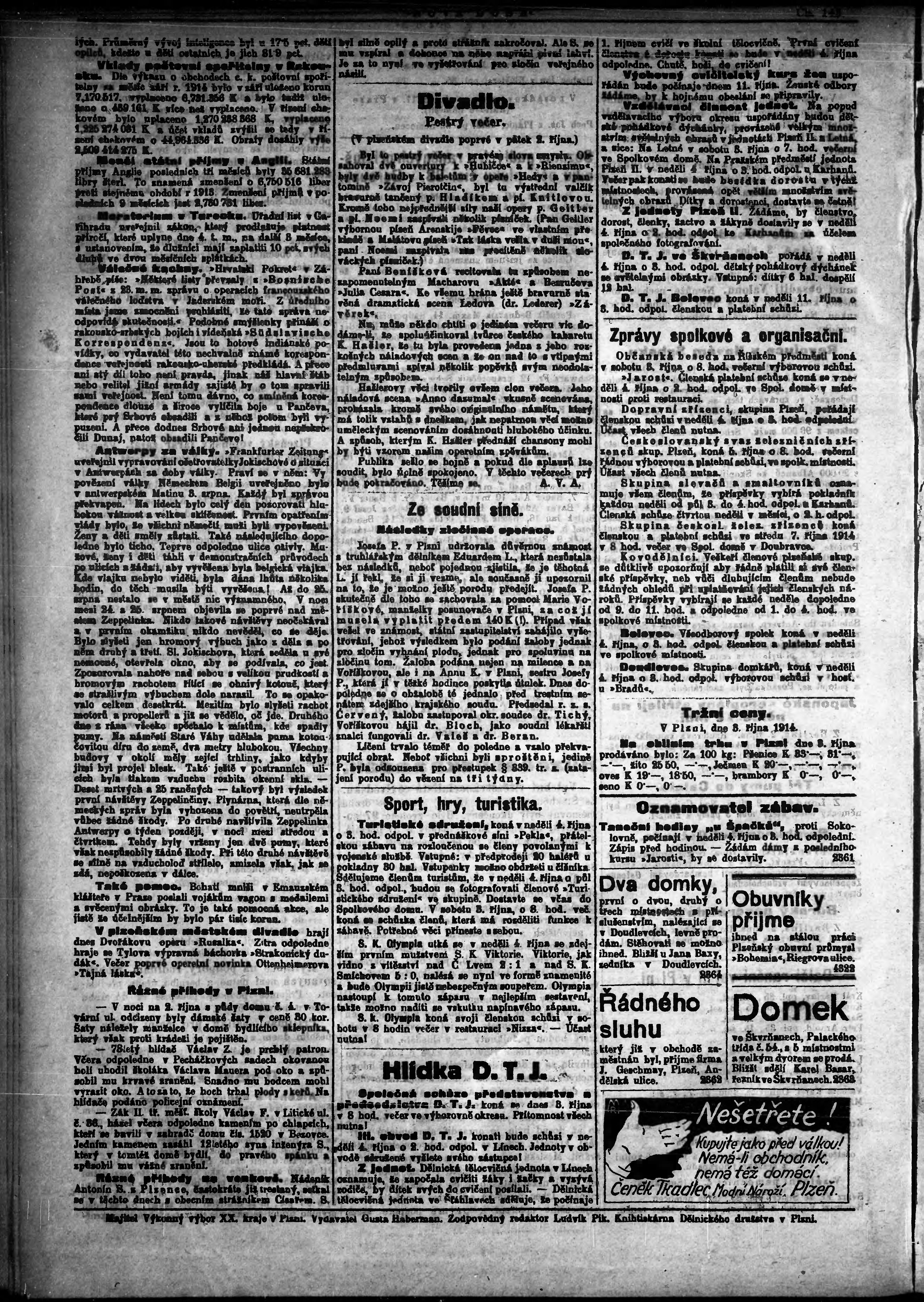 * Datum vydání výtisku: 3.10.1914 Číslo výtisku: 143