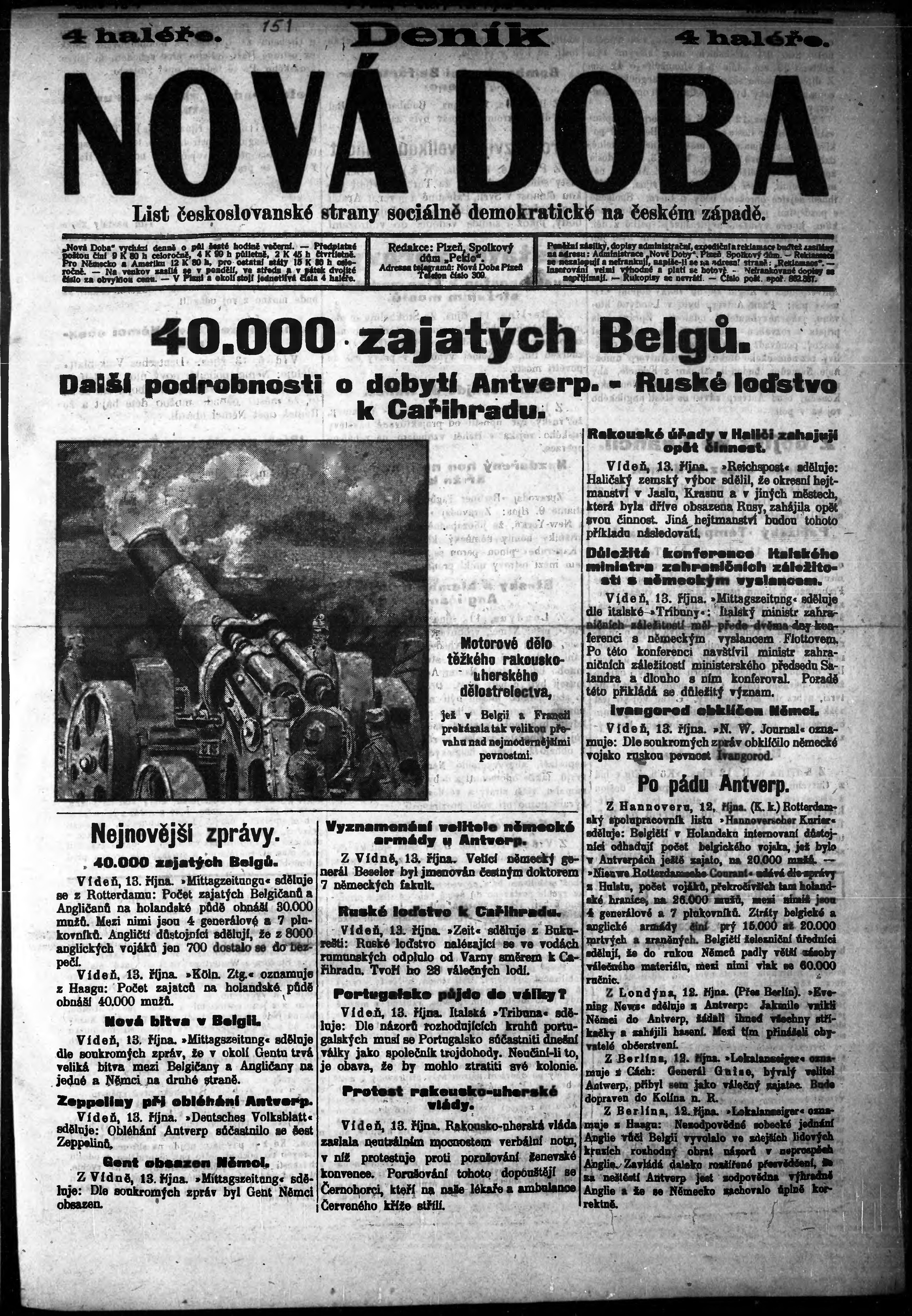 * Datum vydání výtisku: 13.10.1914 Číslo výtisku: 151