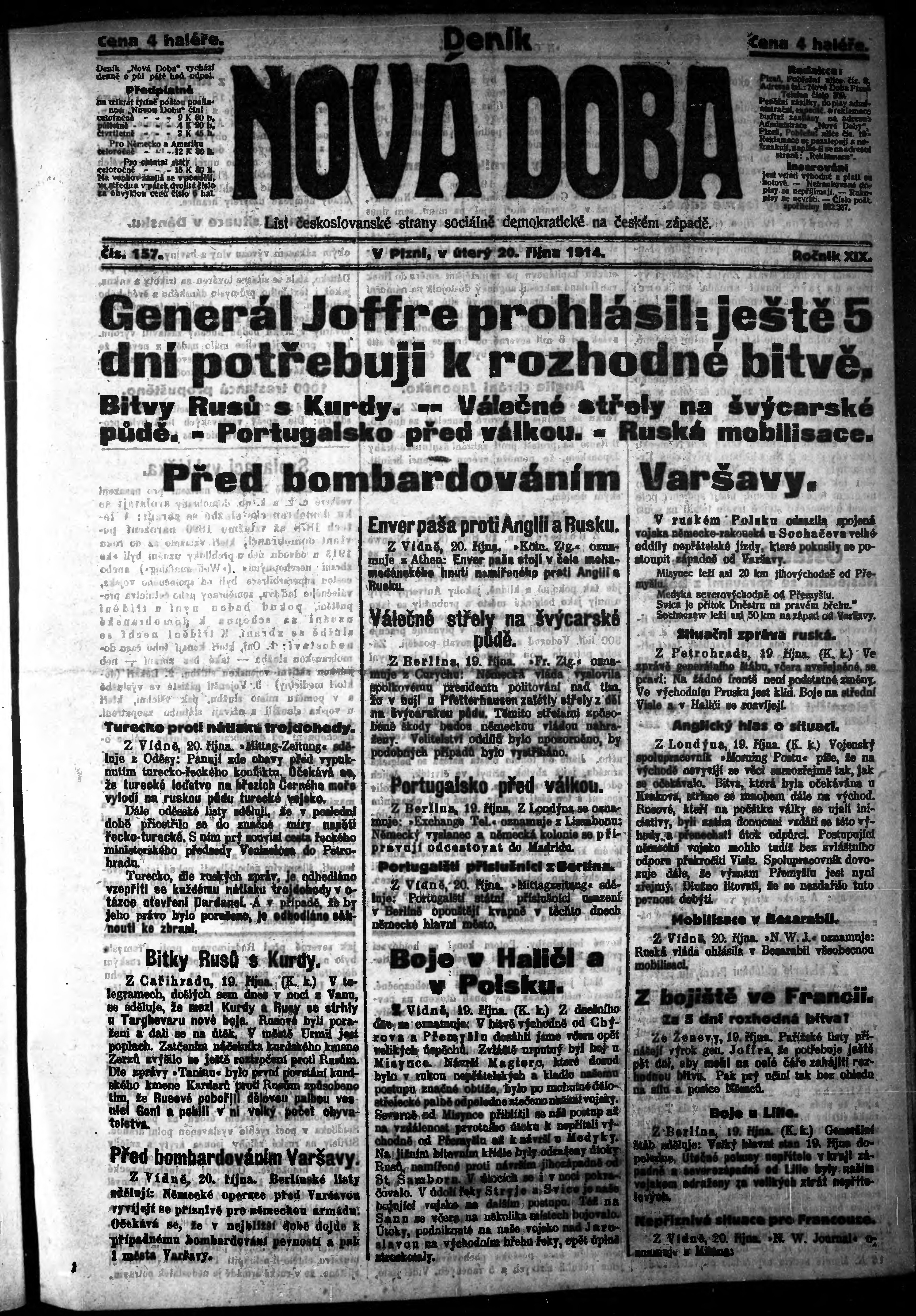 * Datum vydání výtisku: 20.10.1914 Číslo výtisku: 157