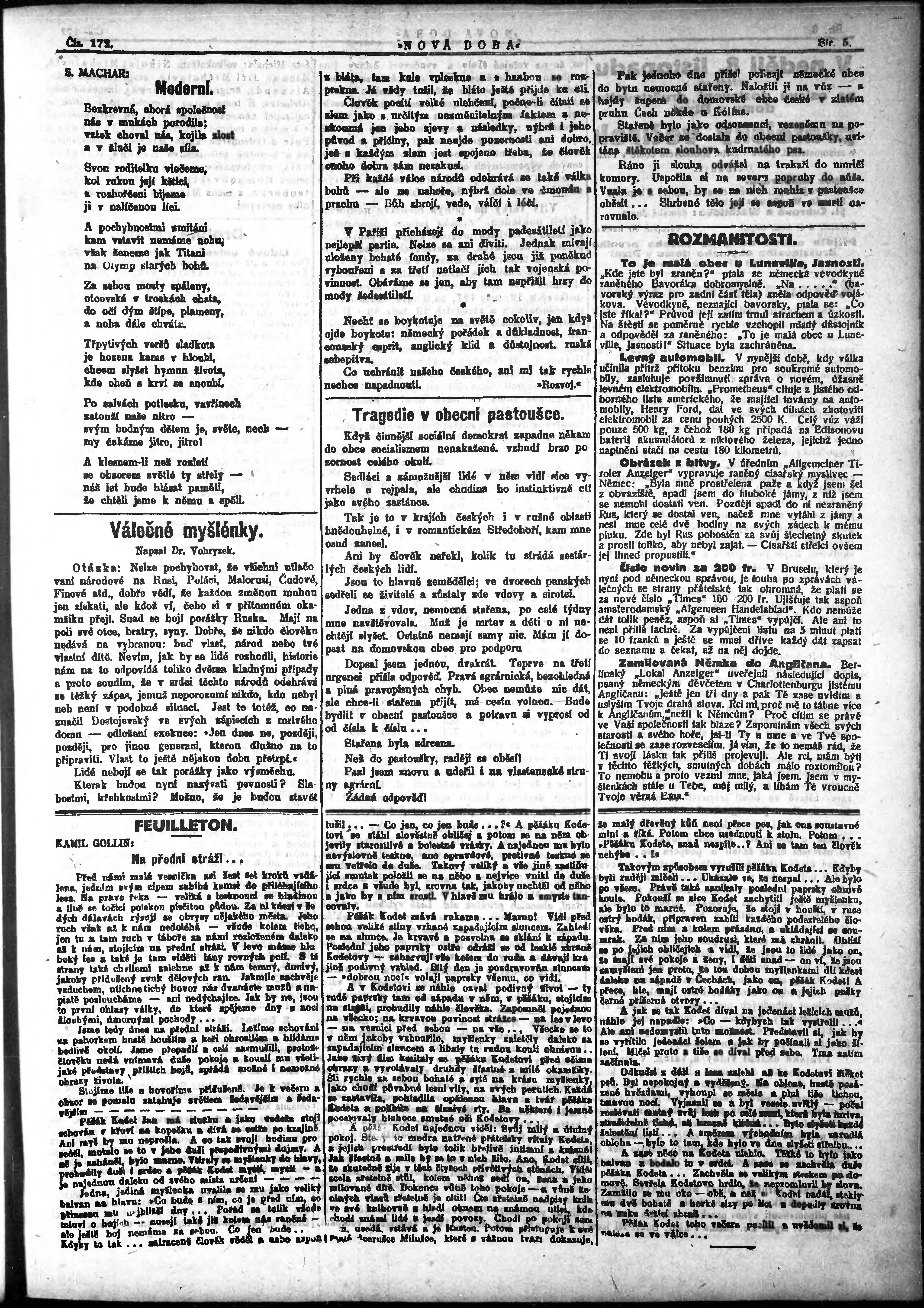 * Datum vydání výtisku: 6.11.1914 Číslo výtisku: 172