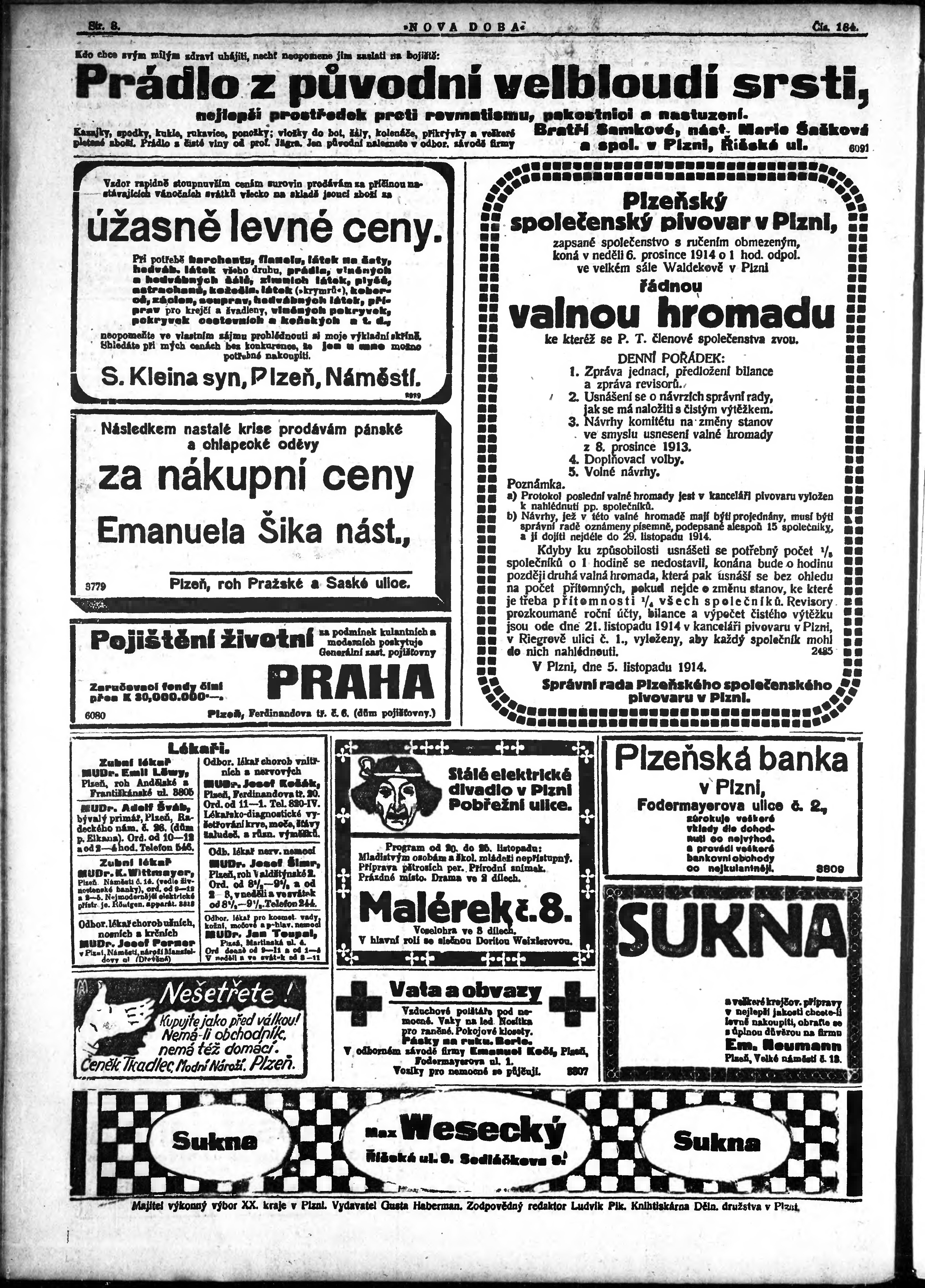 * Datum vydání výtisku: 20.11.1914 Číslo výtisku: 184