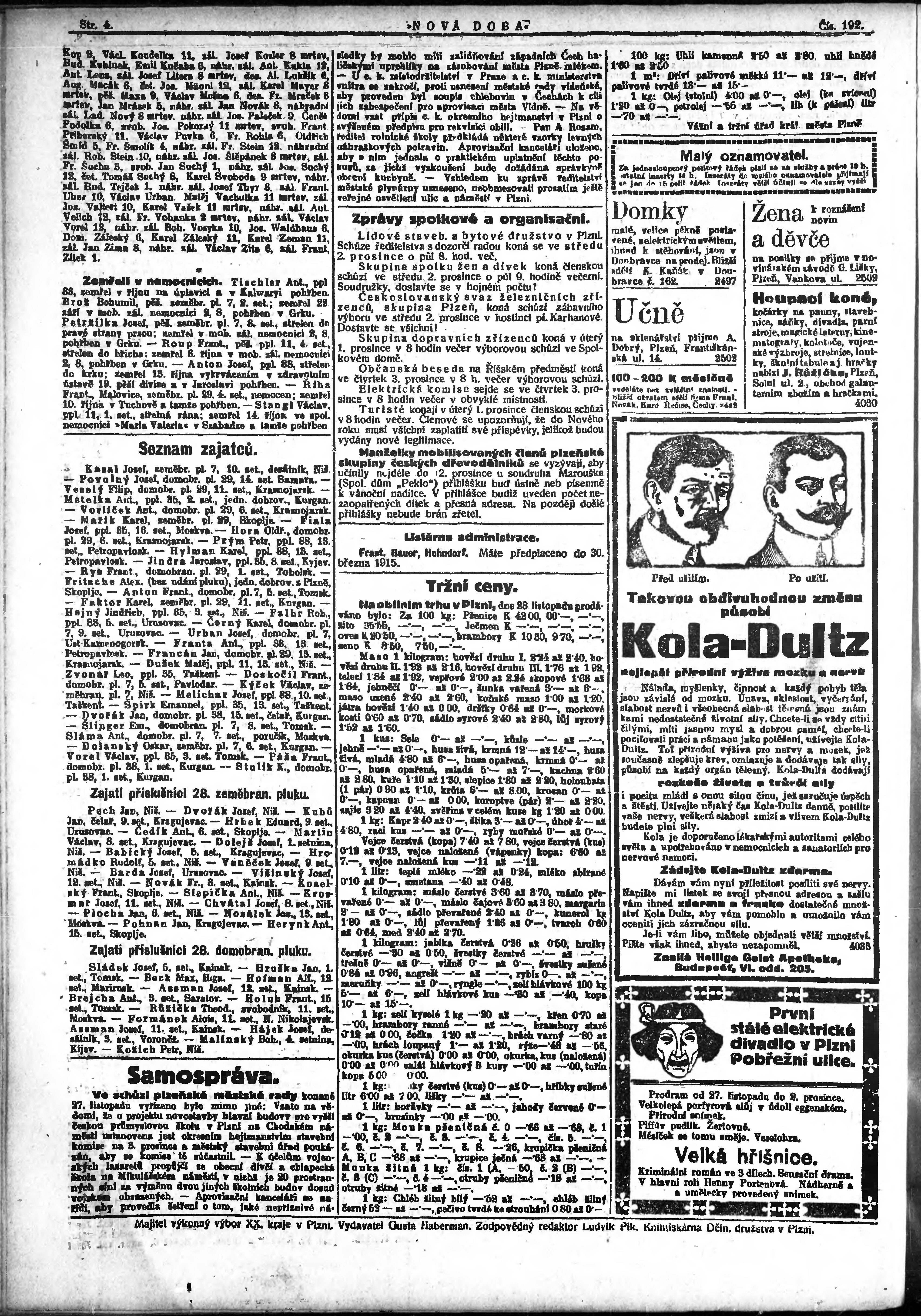 * Datum vydání výtisku: 30.11.1914 Číslo výtisku: 192