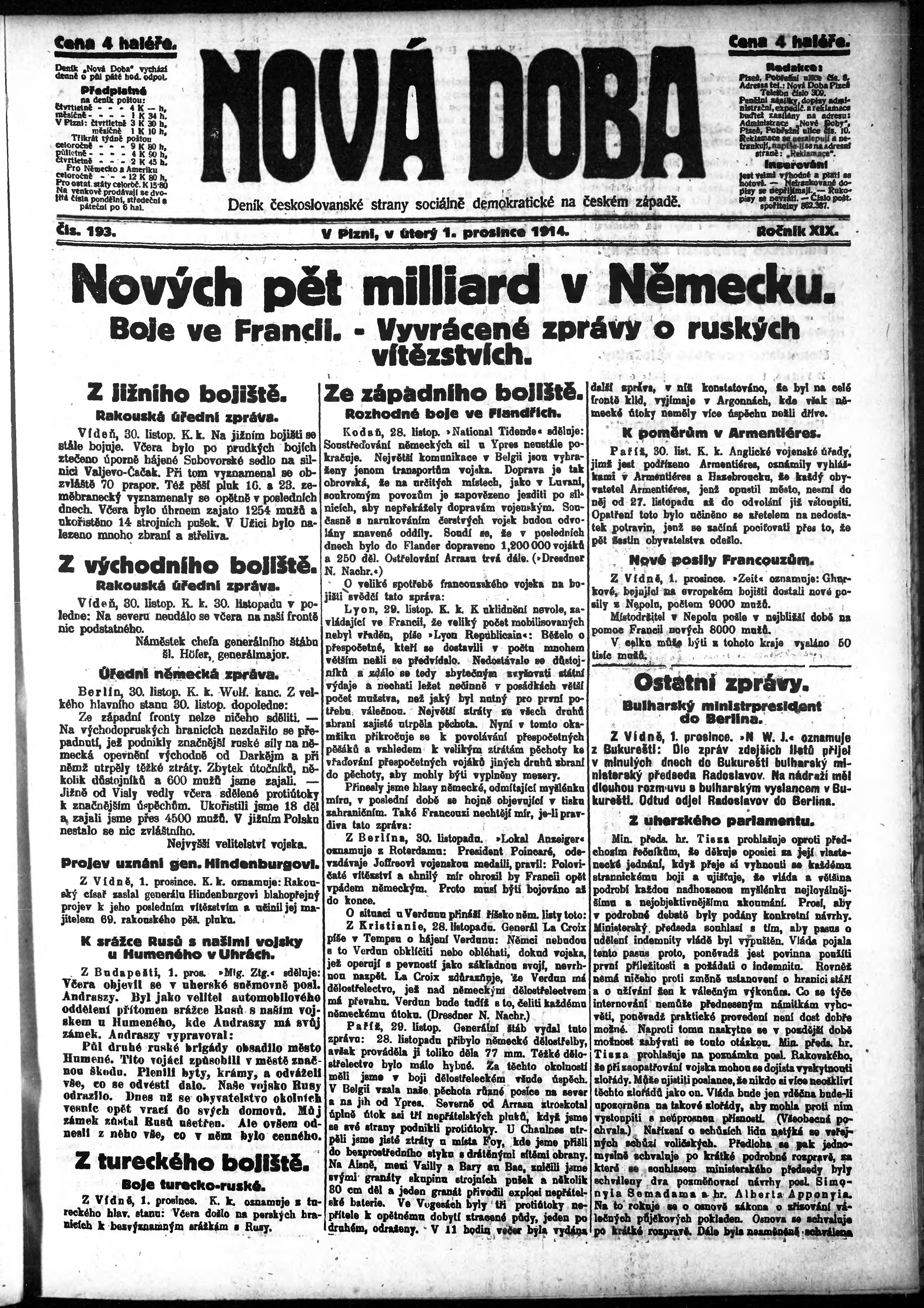 * Datum vydání výtisku: 1.12.1914 Číslo výtisku: 193