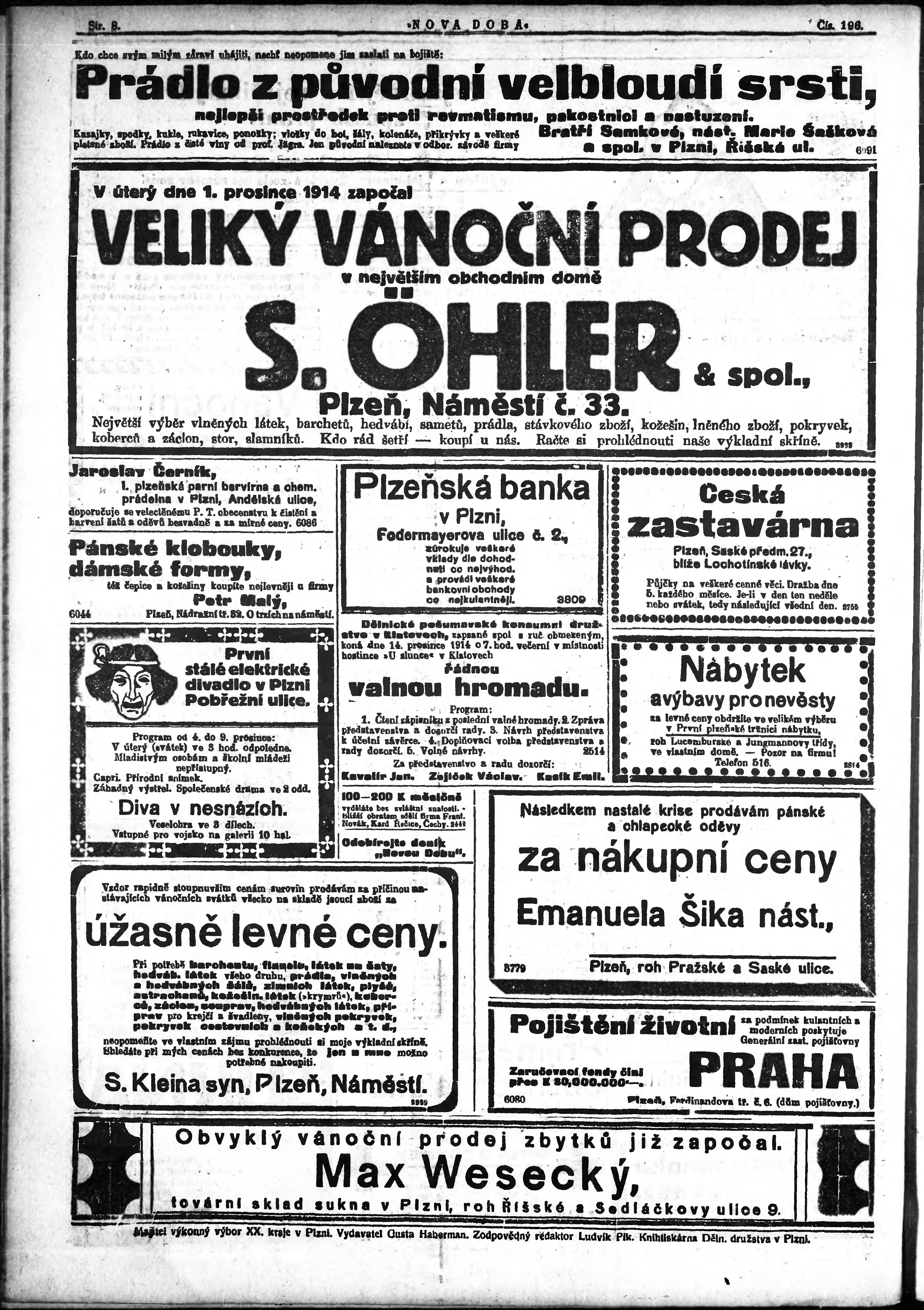* Datum vydání výtisku: 4.12.1914 Číslo výtisku: 196