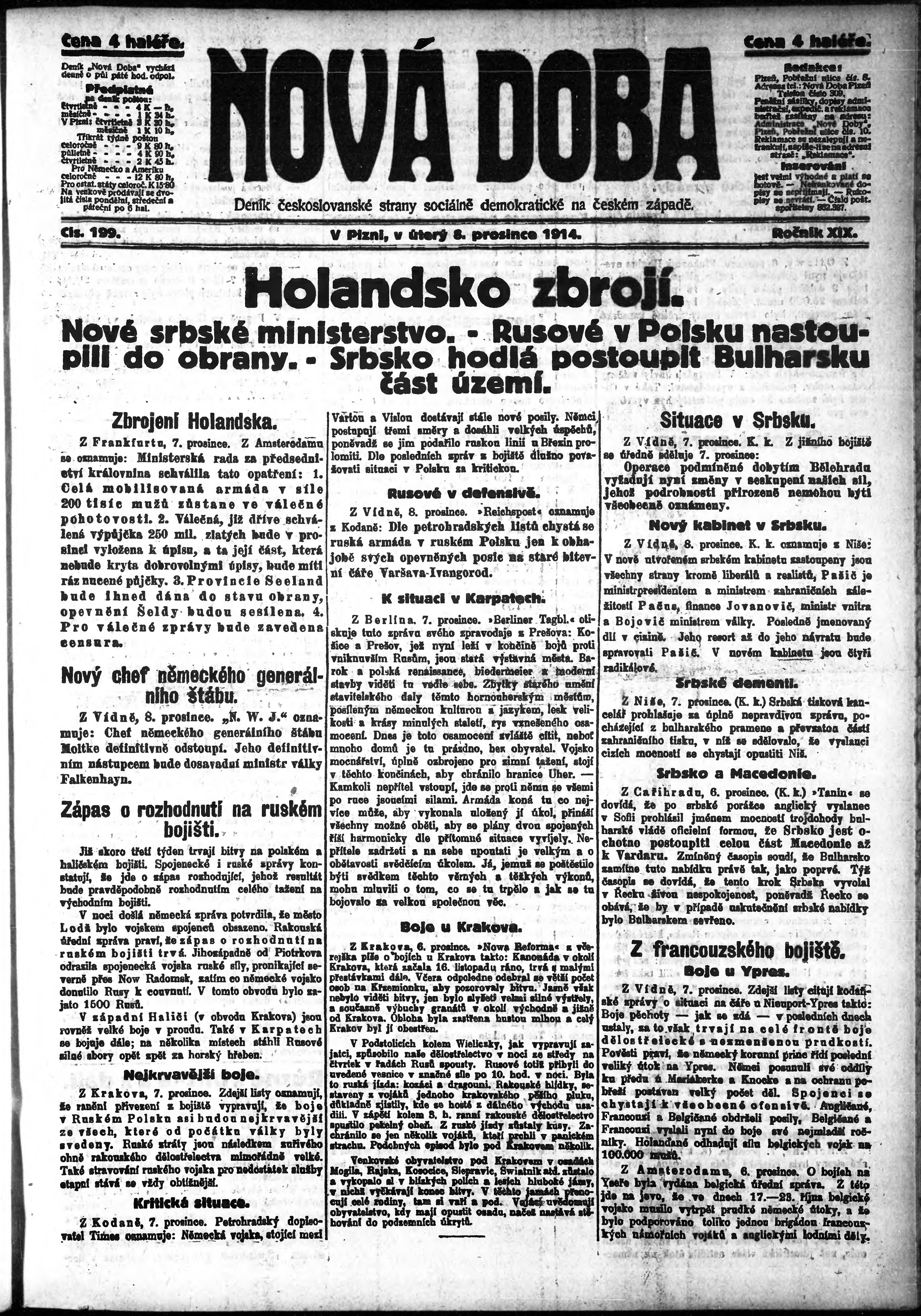 * Datum vydání výtisku: 8.12.1914 Číslo výtisku: 199